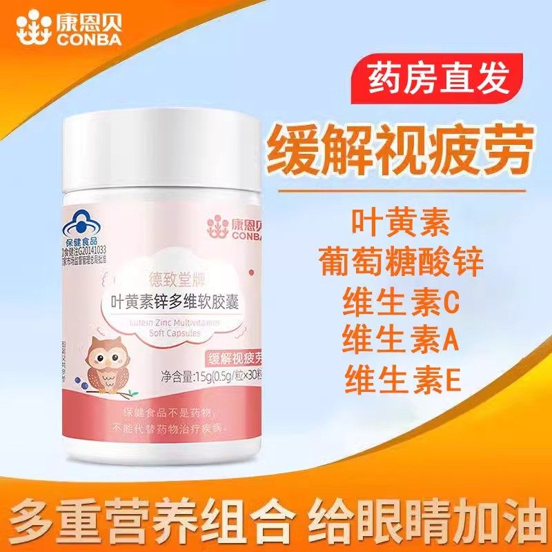 康恩贝叶黄素锌多种维生素软胶囊儿童成人缓解视疲劳药房正品9zh