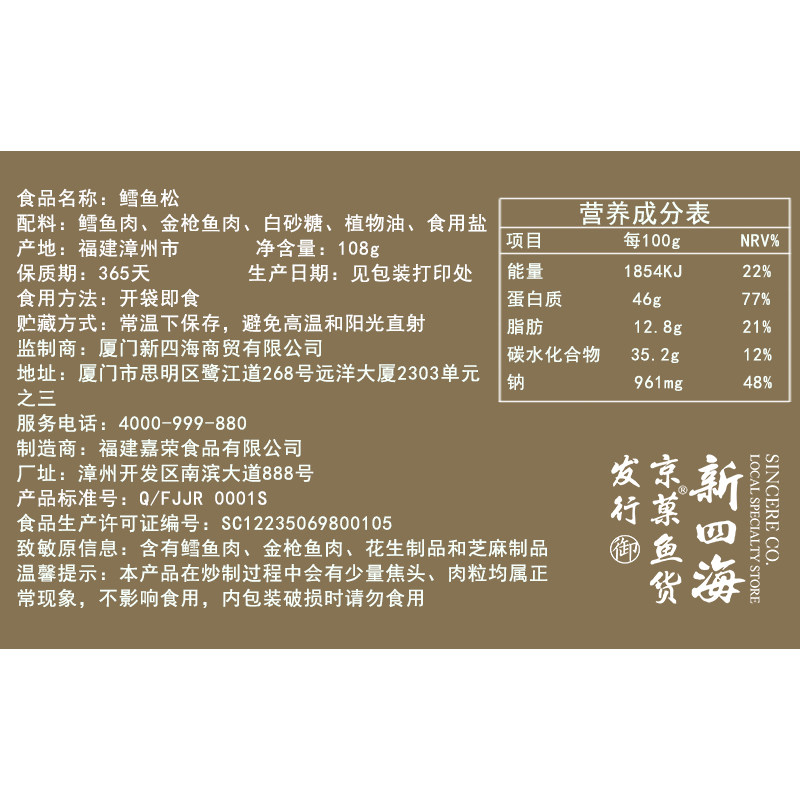 新四海鱼松鳕鱼金松108g儿童宝宝肉松金枪鱼鳕鱼原味鳕鱼肉松