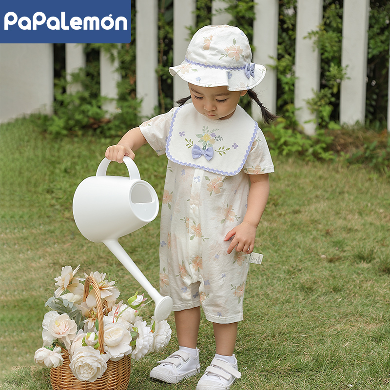 柠檬爬爬婴儿夏季冰蚕棉短袖哈衣
