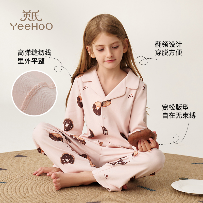 英氏女童家居服套装纯棉中大童长袖分体睡衣宽松2025春秋新款A类