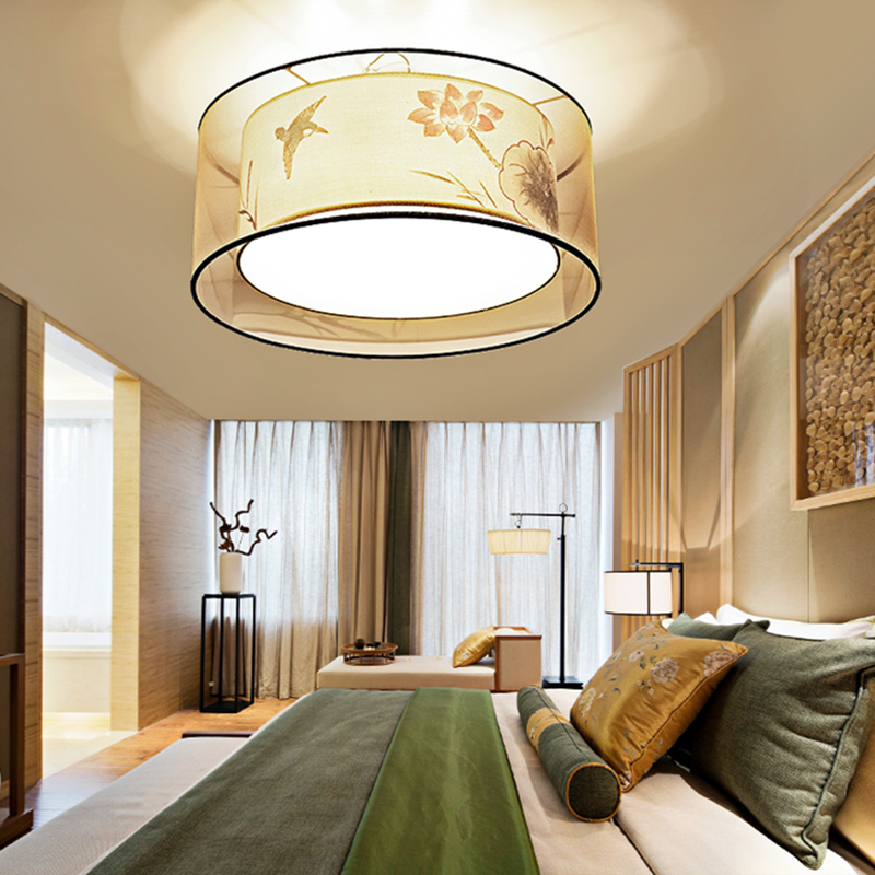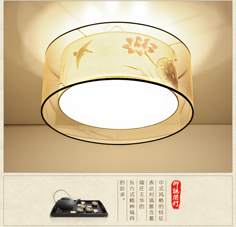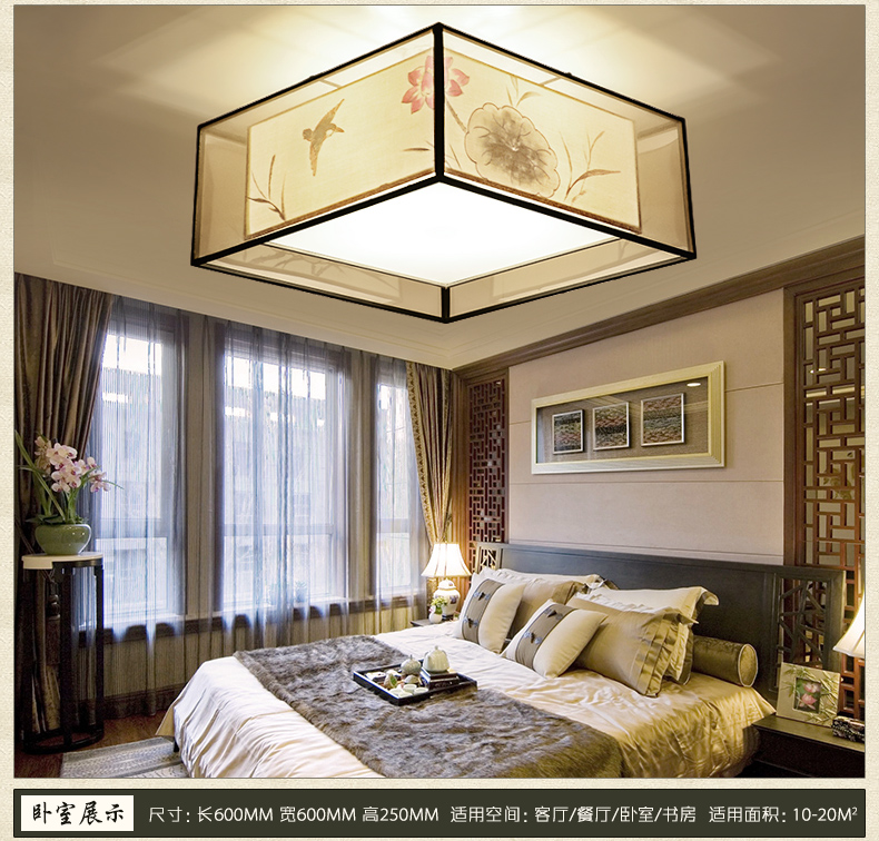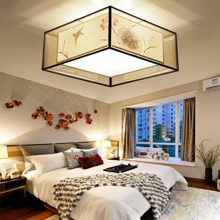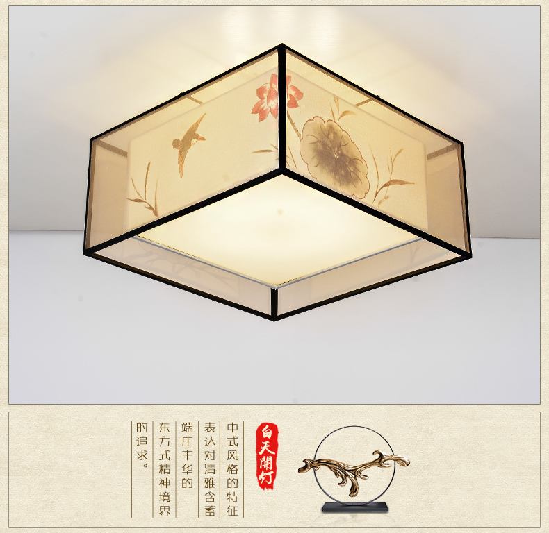 包邮新中式正方形手绘布艺吸顶灯 LED客厅卧室书房 现代餐厅灯饰