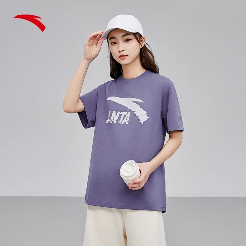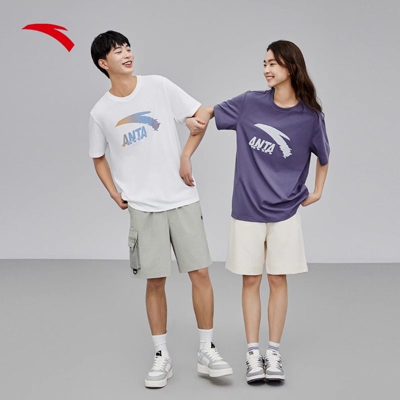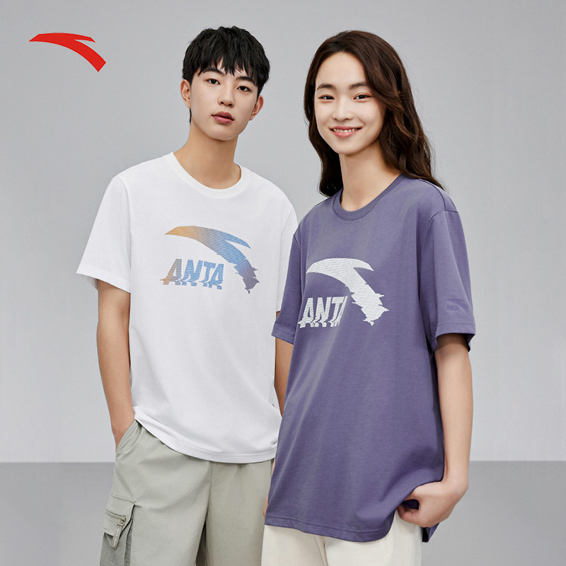 安踏短袖t恤男女同款2025春季新款休闲圆领针织运动上衣打底衫