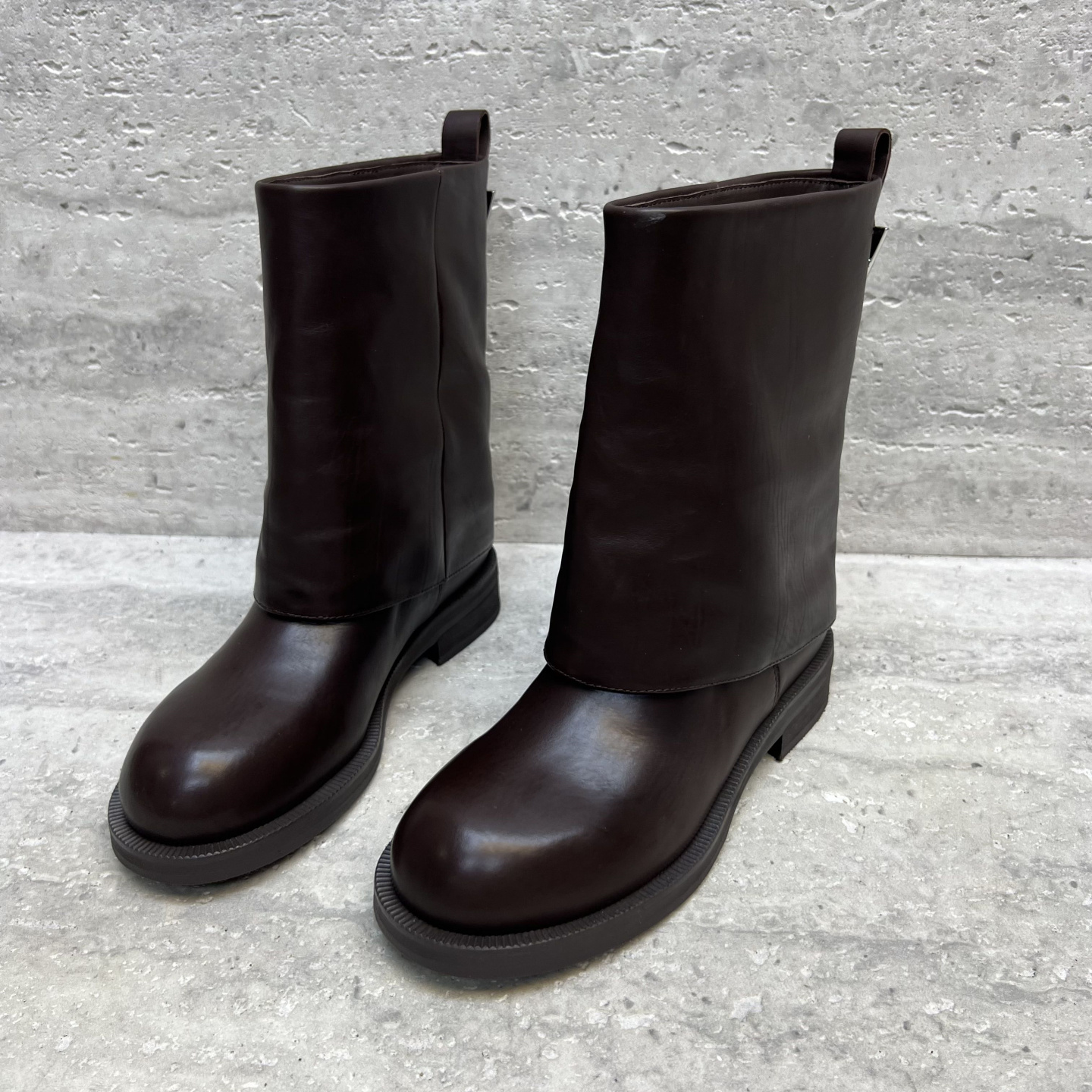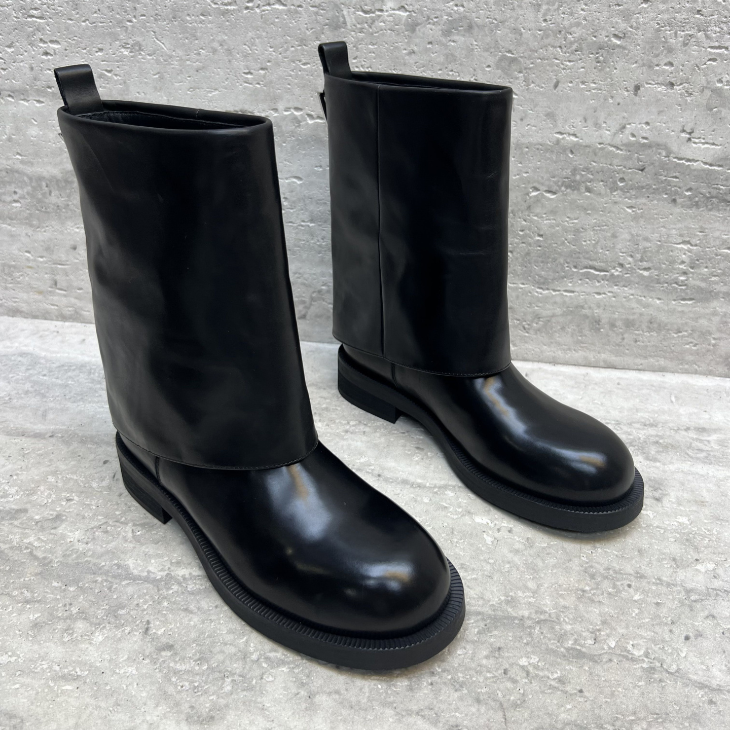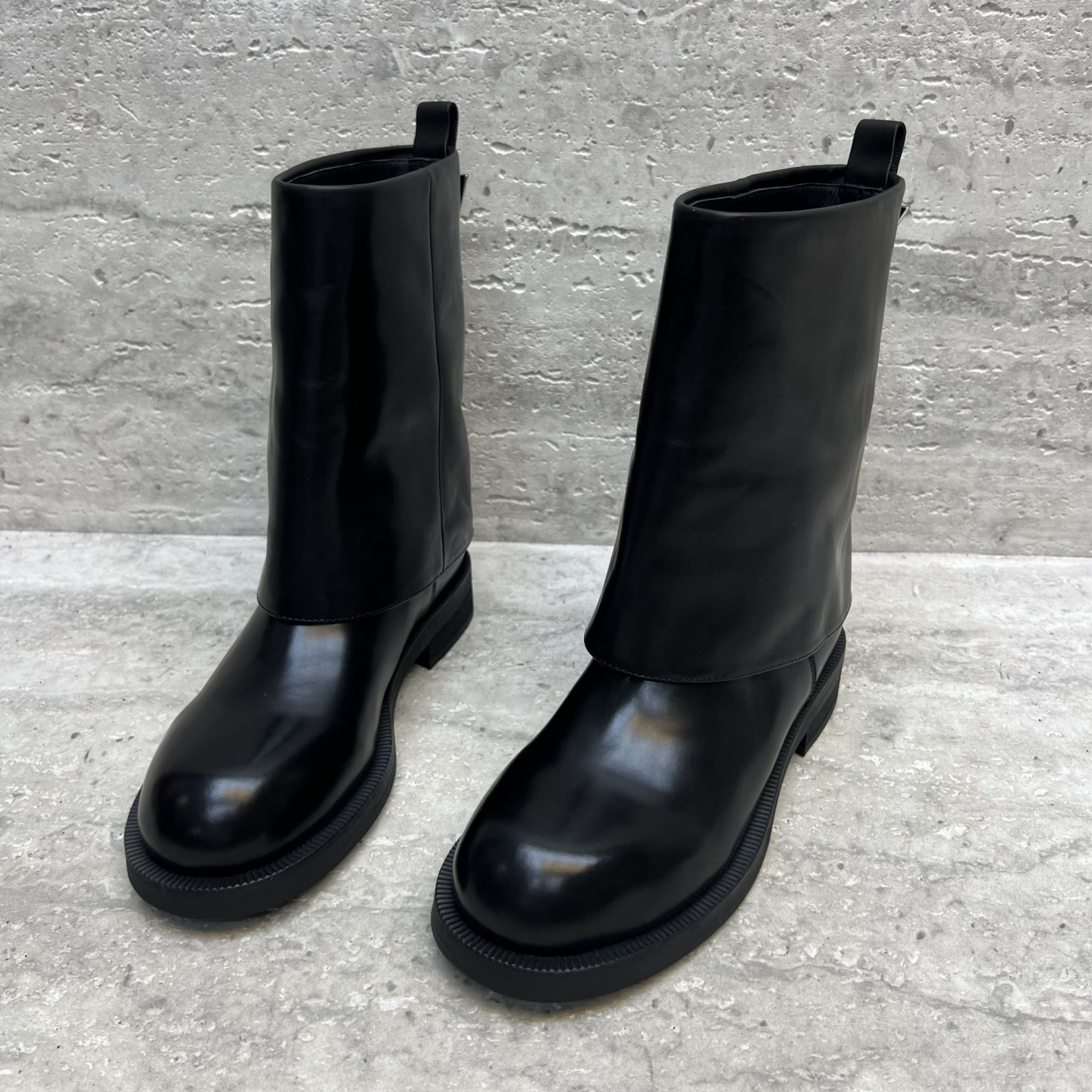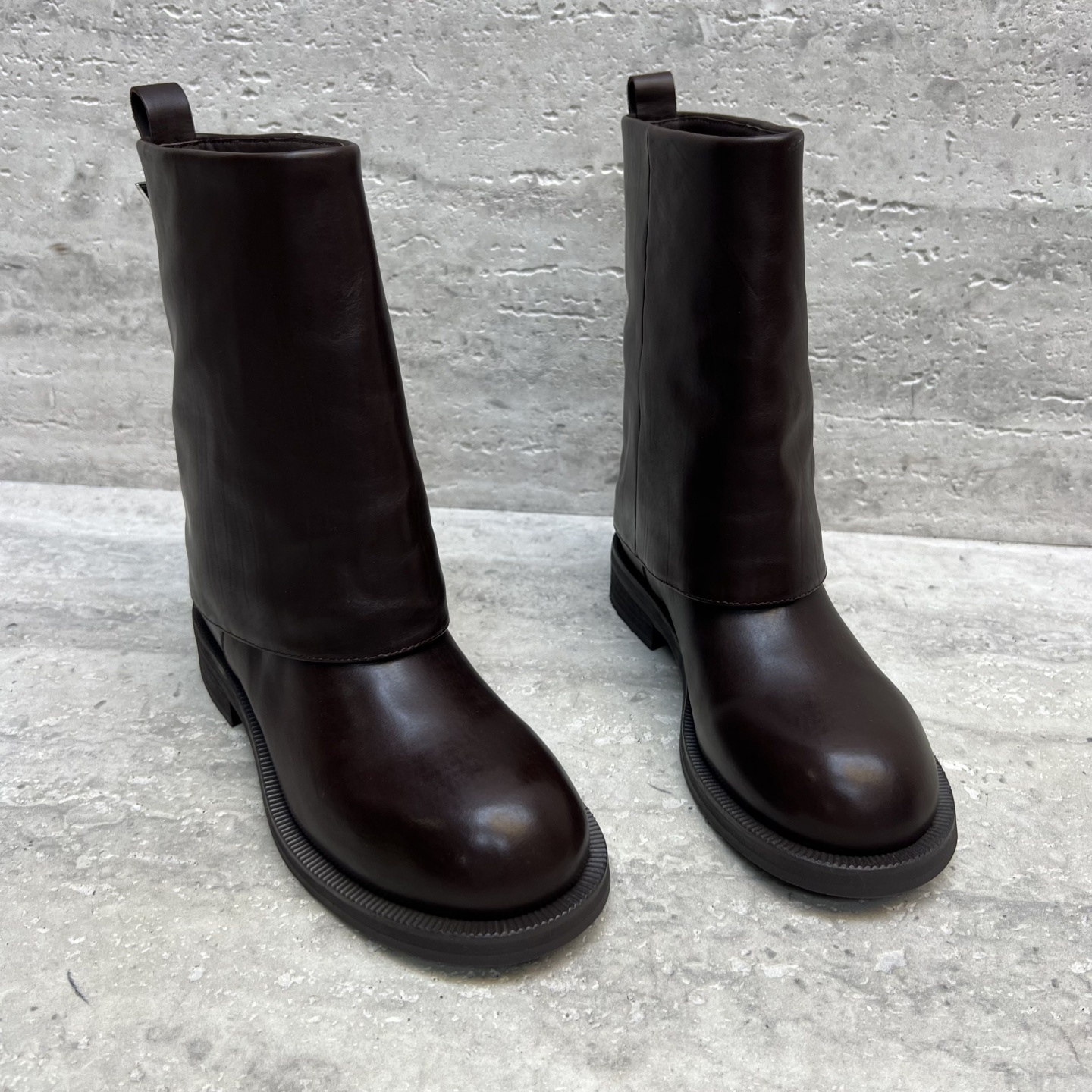 欧洲站2025秋季新款欧货真皮女靴粗跟套筒胎牛皮裤靴切尔西靴短靴