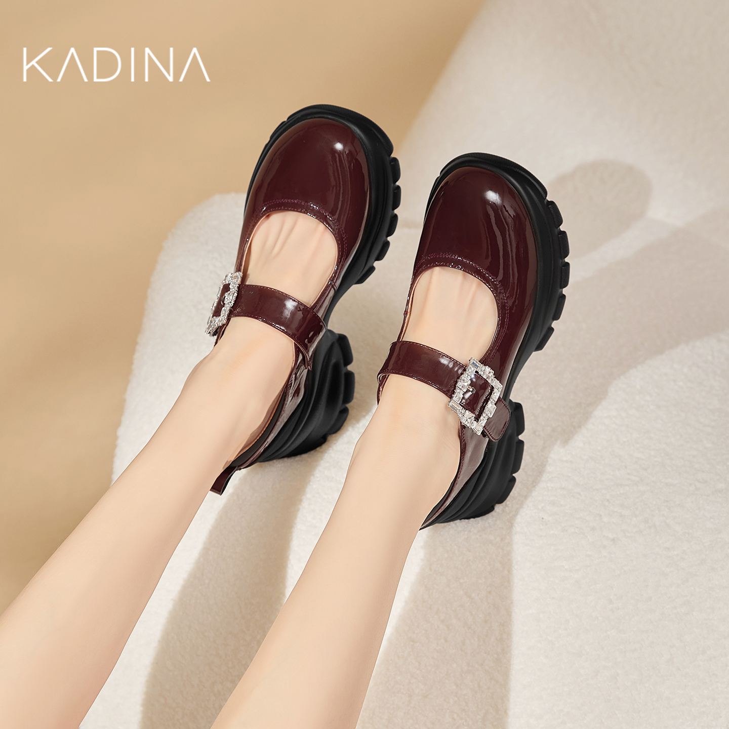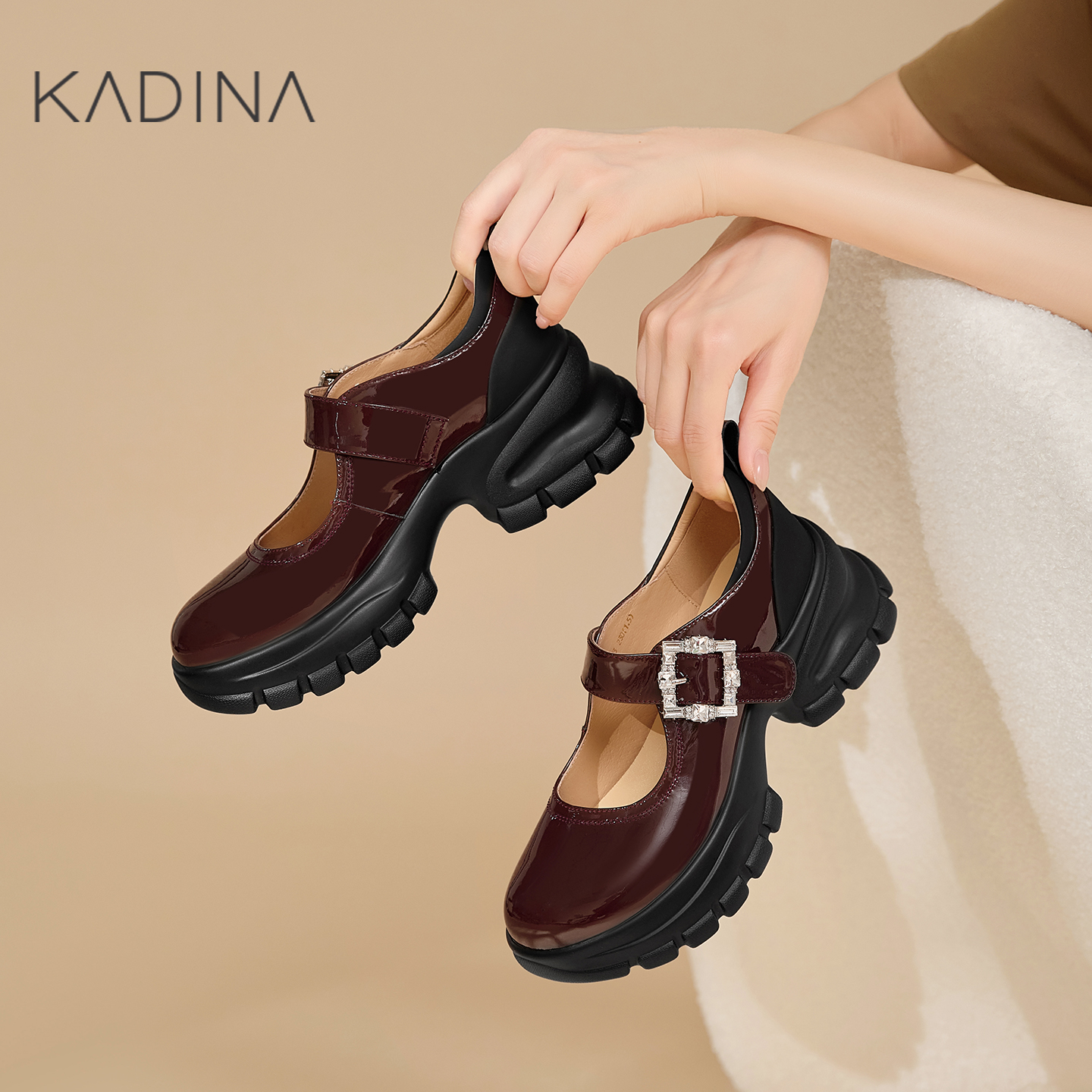 卡迪娜真皮皮带扣乐福鞋玛丽珍鞋2025新款松糕厚底女鞋KWL250103