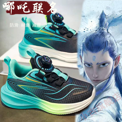 哪吒赤兔男童鞋子初秋轻便软底儿童透气网面跑步鞋男孩皮面运动鞋