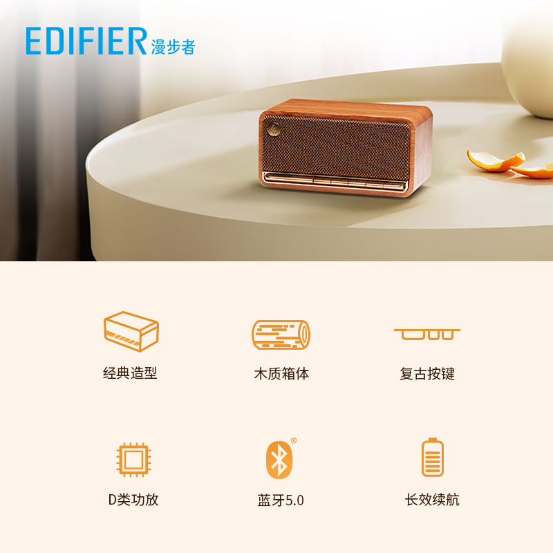 EDIFIER/漫步者 M230蓝牙音箱复古台式小音响木质便携无线插卡d12