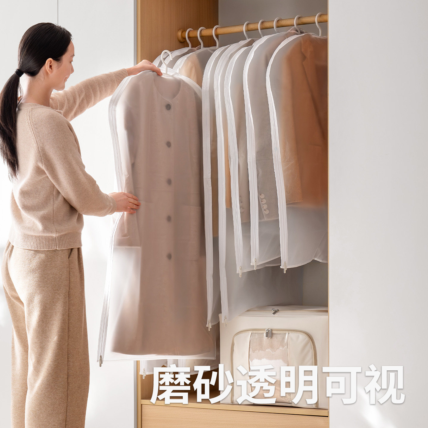 懒角落衣服防尘罩大衣物防尘袋羽绒服外套西装透明挂衣袋衣柜长款