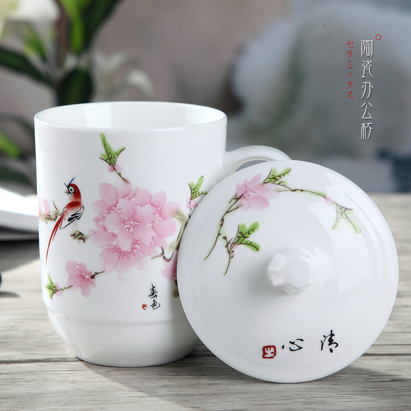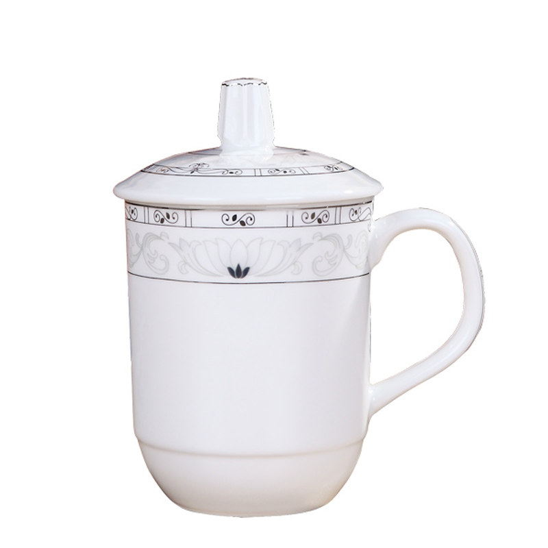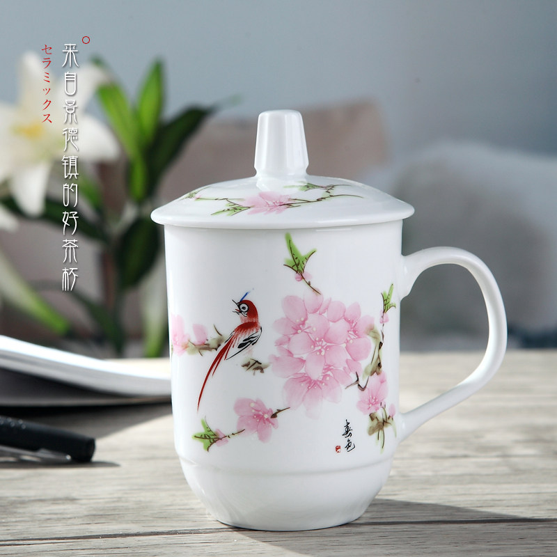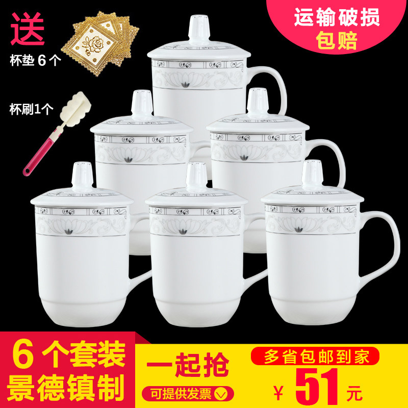 景德镇陶瓷带盖茶杯6只装水杯办公杯家用酒店会议室泡茶杯子定制
