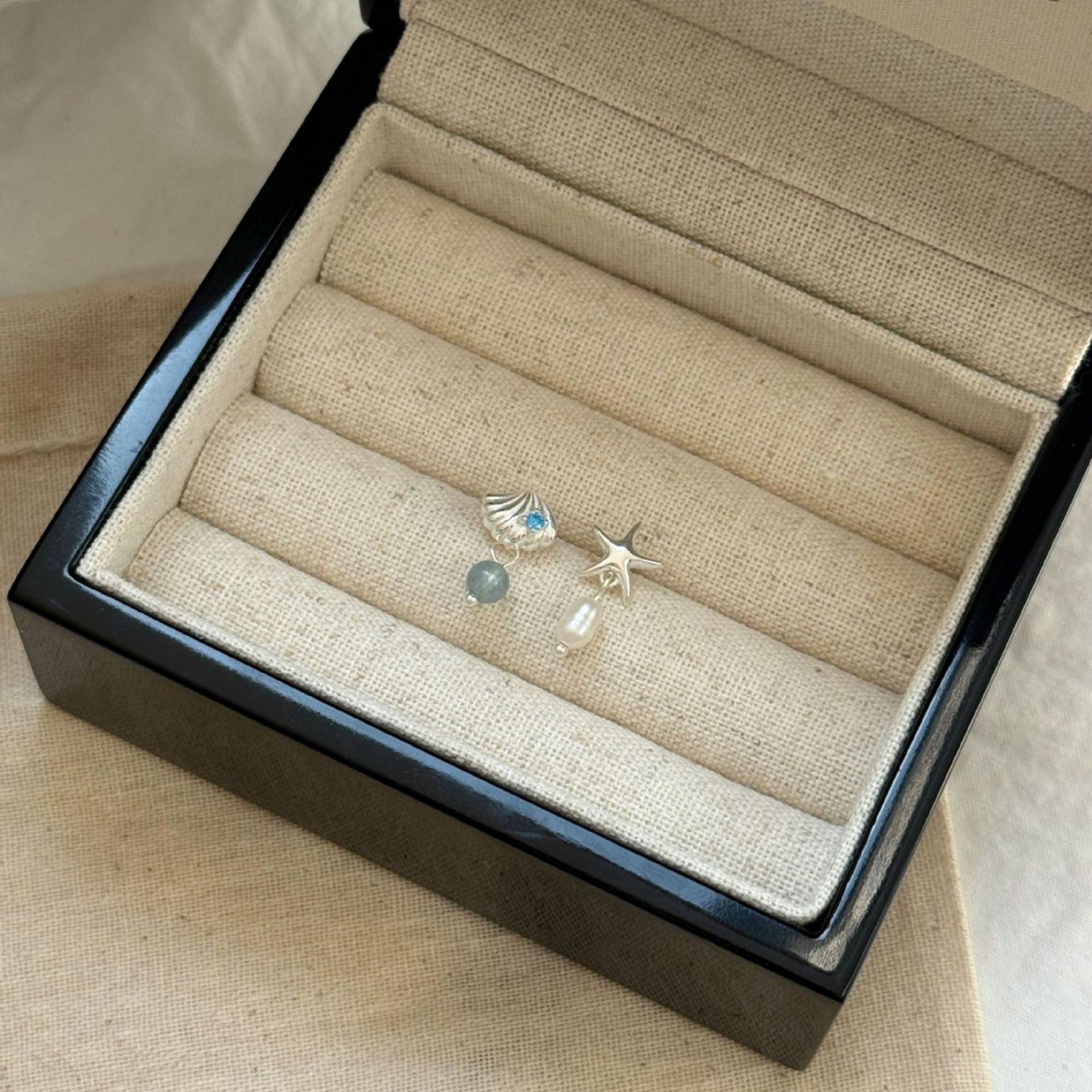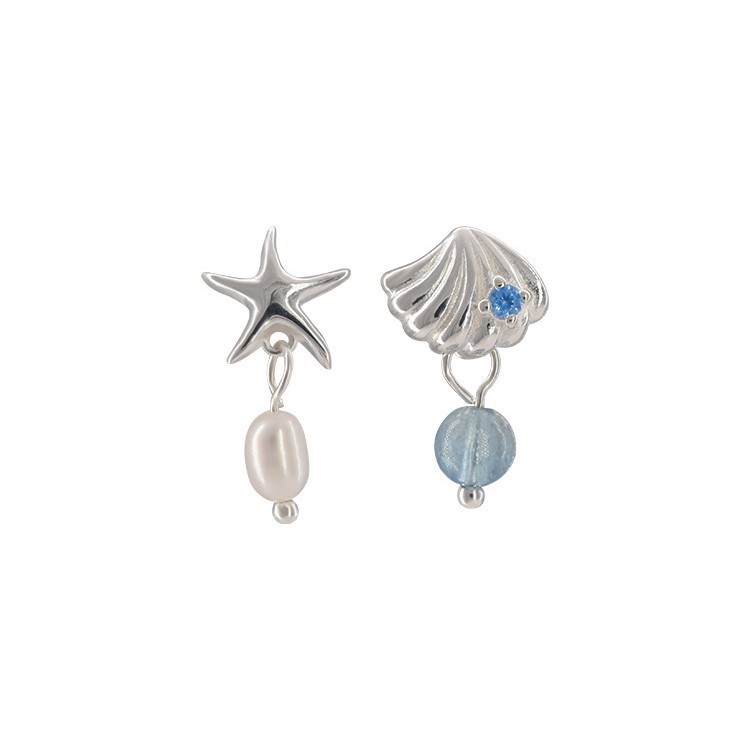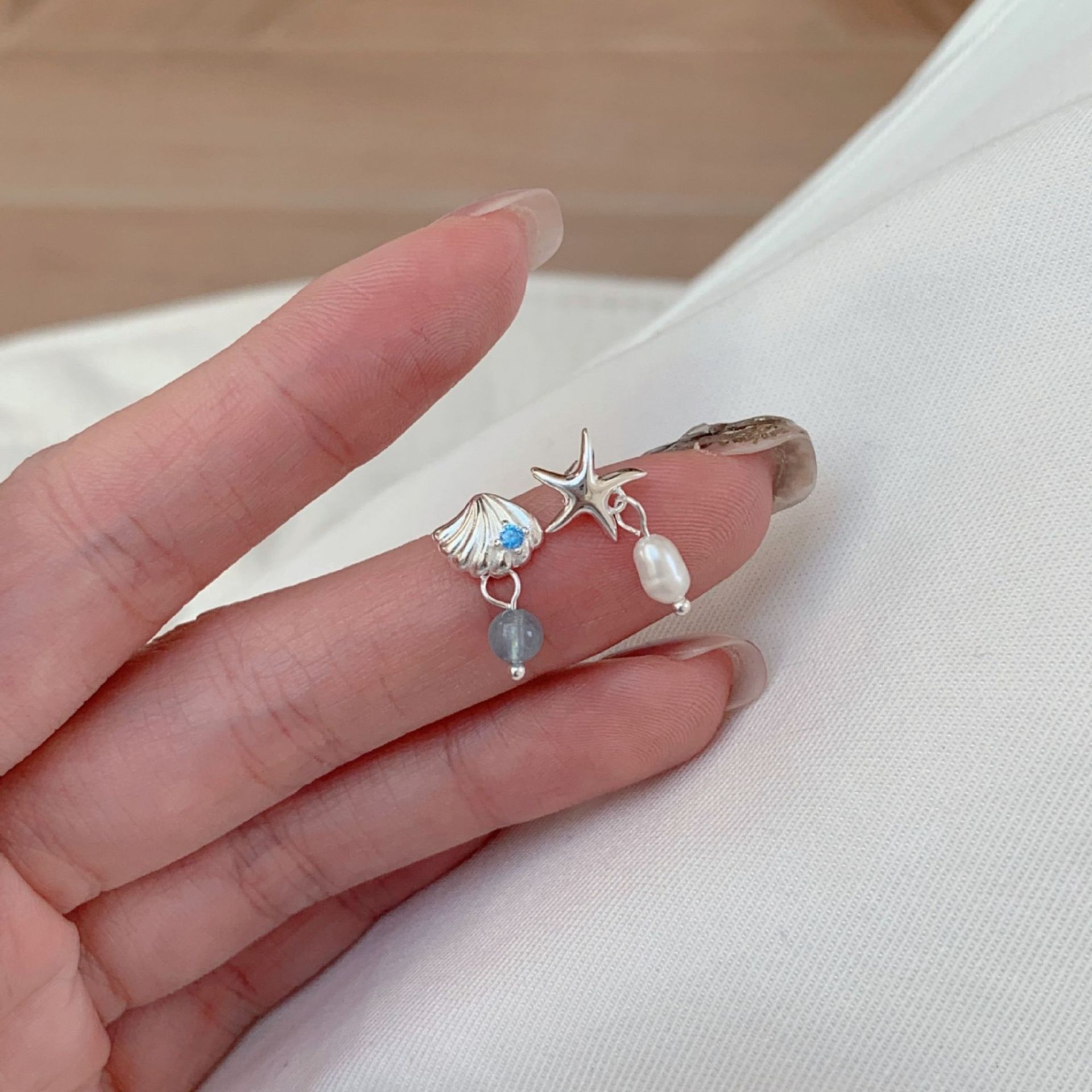一恋不对称海星贝壳耳钉女甜美时尚百搭个性气质仿珍珠耳环精致耳