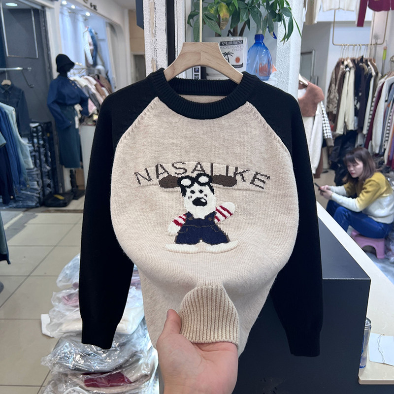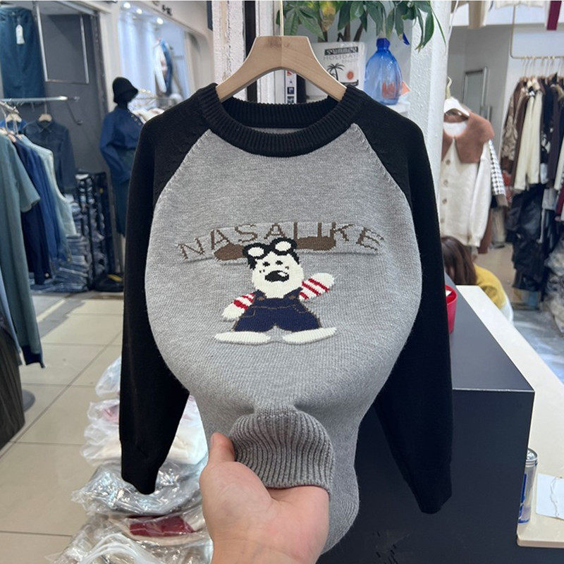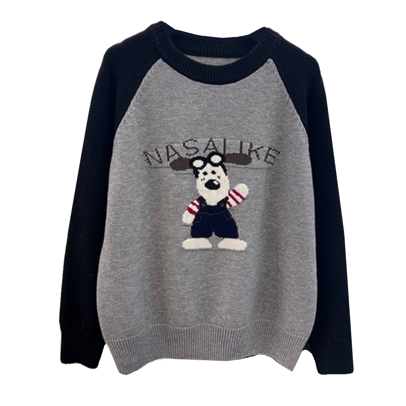 宽松显瘦【80-200斤】卡通动漫提花针织衫女冬大码慵懒风撞色毛衣