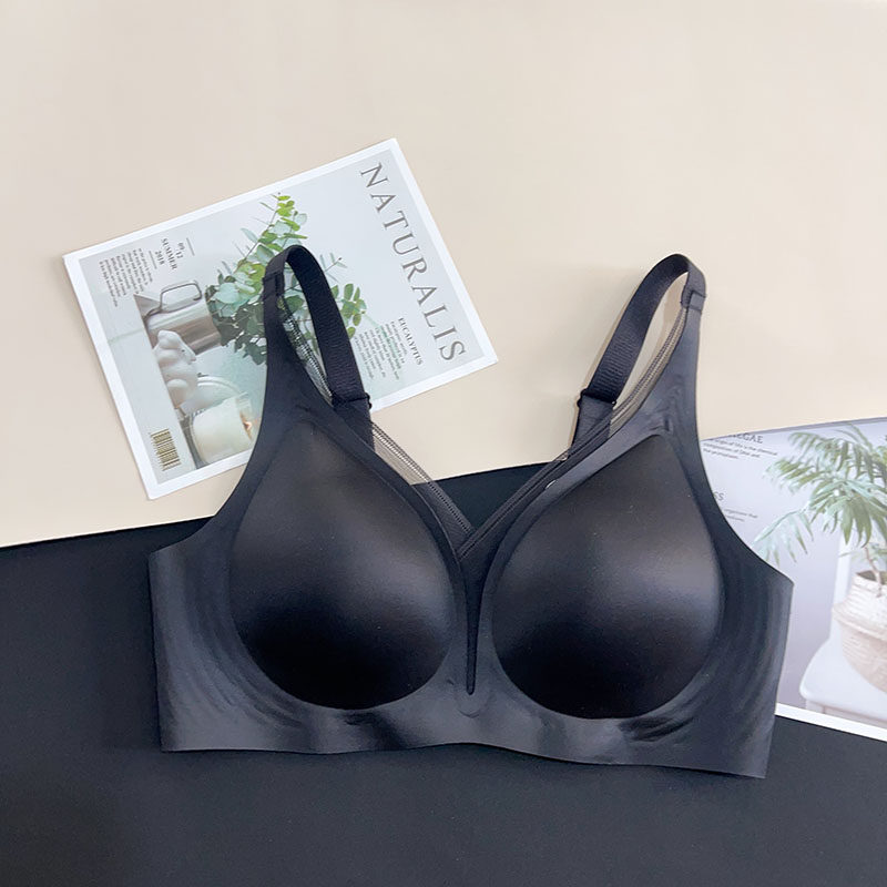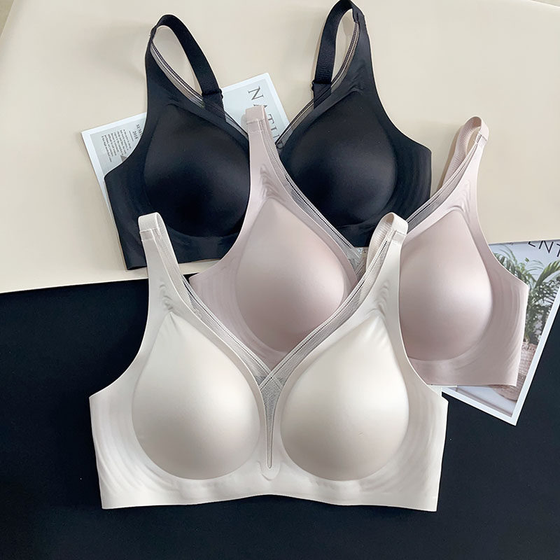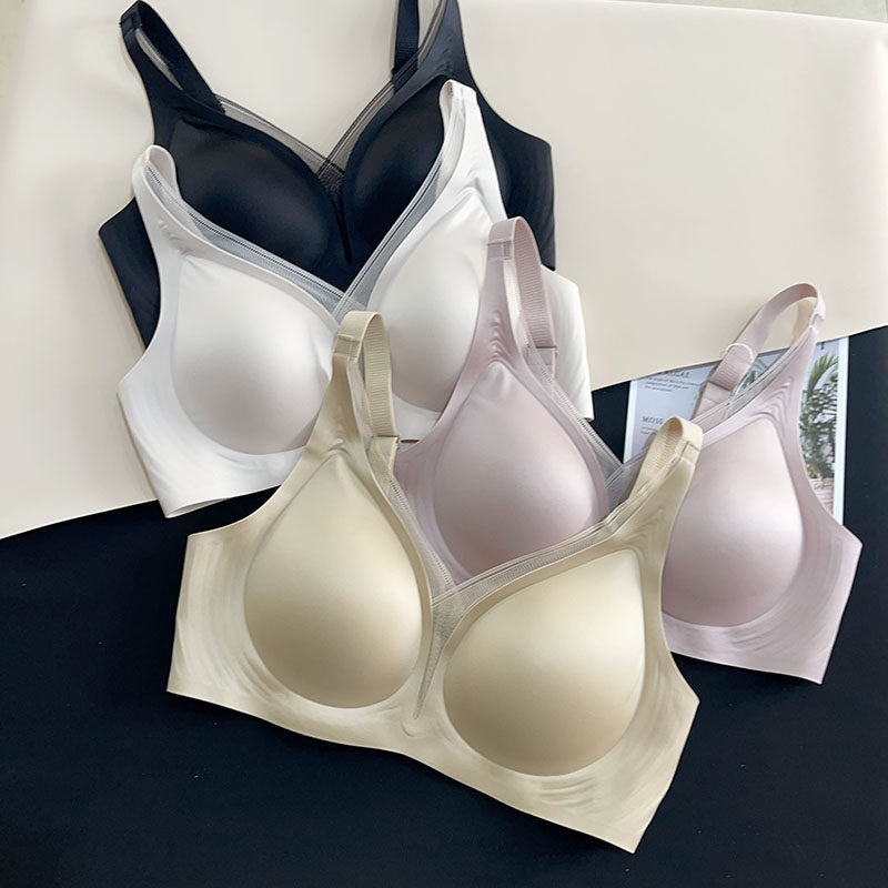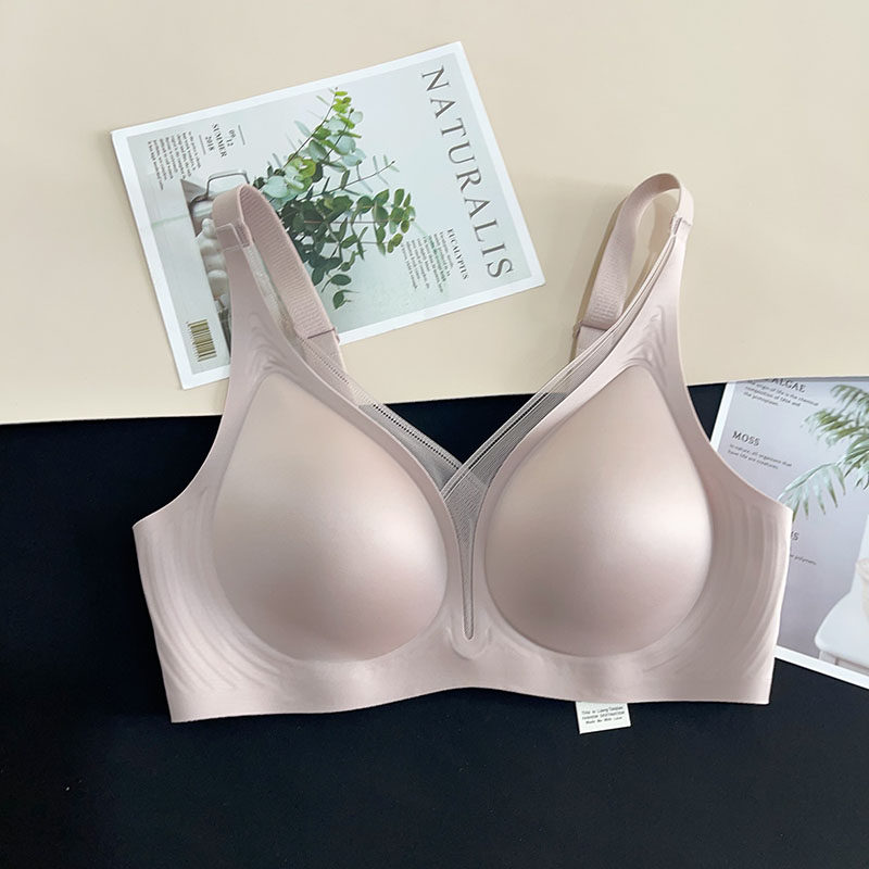 新款光面无痕半固定薄杯舒适透气内衣女网纱V领聚拢收副乳文胸罩