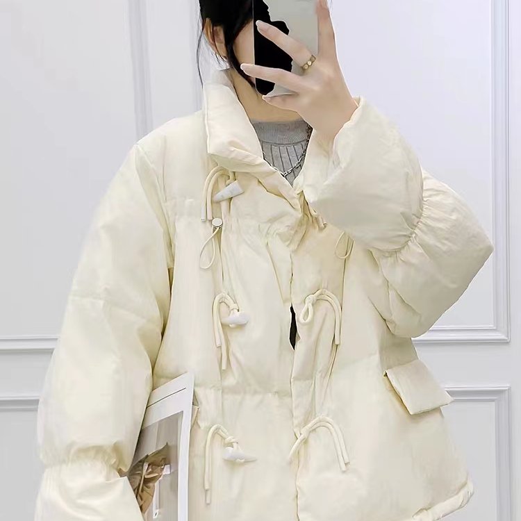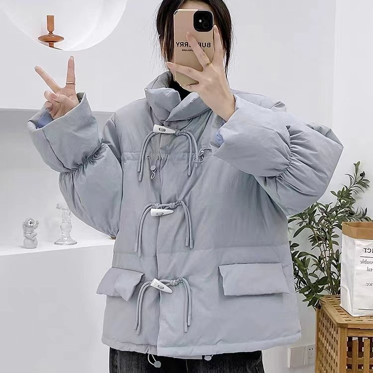2023年新款韩系羽绒棉服女短款韩版宽松牛角扣棉衣面包服外套