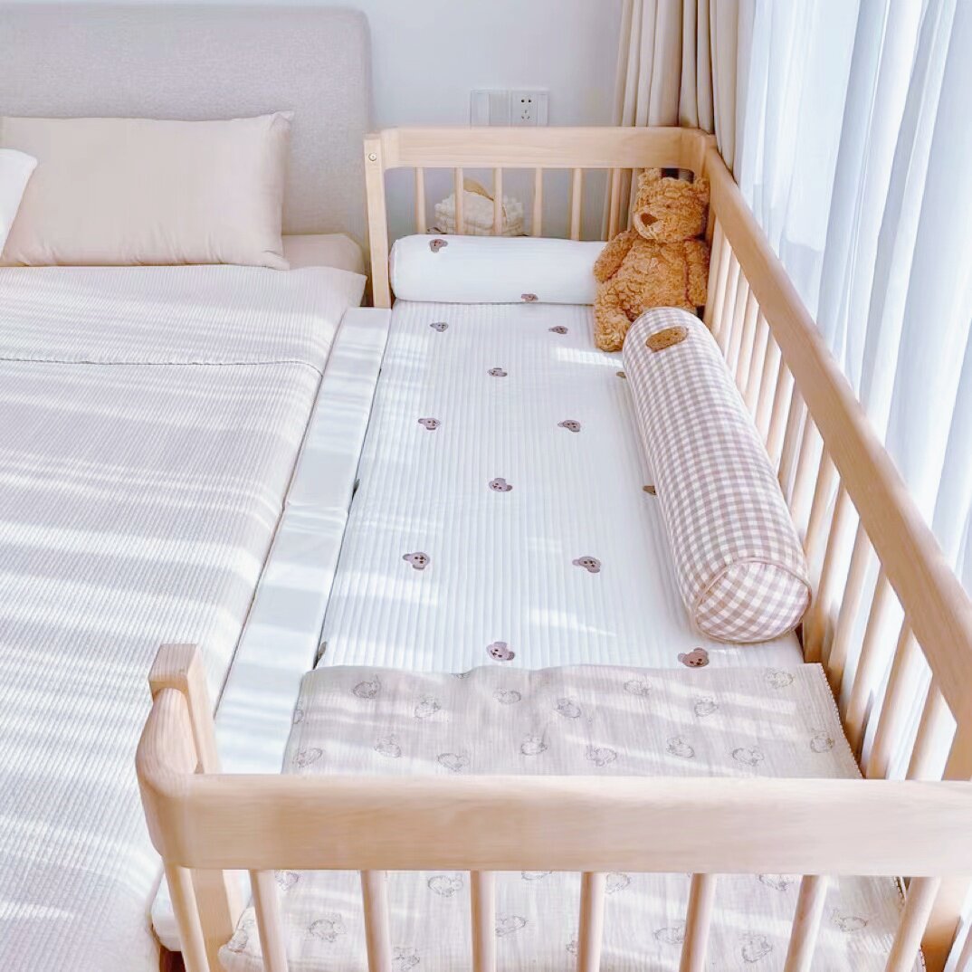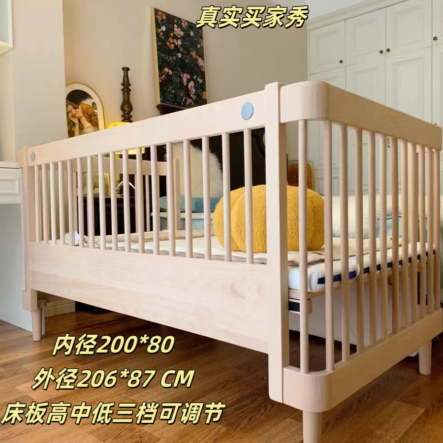 高品质进口山毛榉实木婴儿拼接床无漆高护栏新生儿宝宝儿童床可调