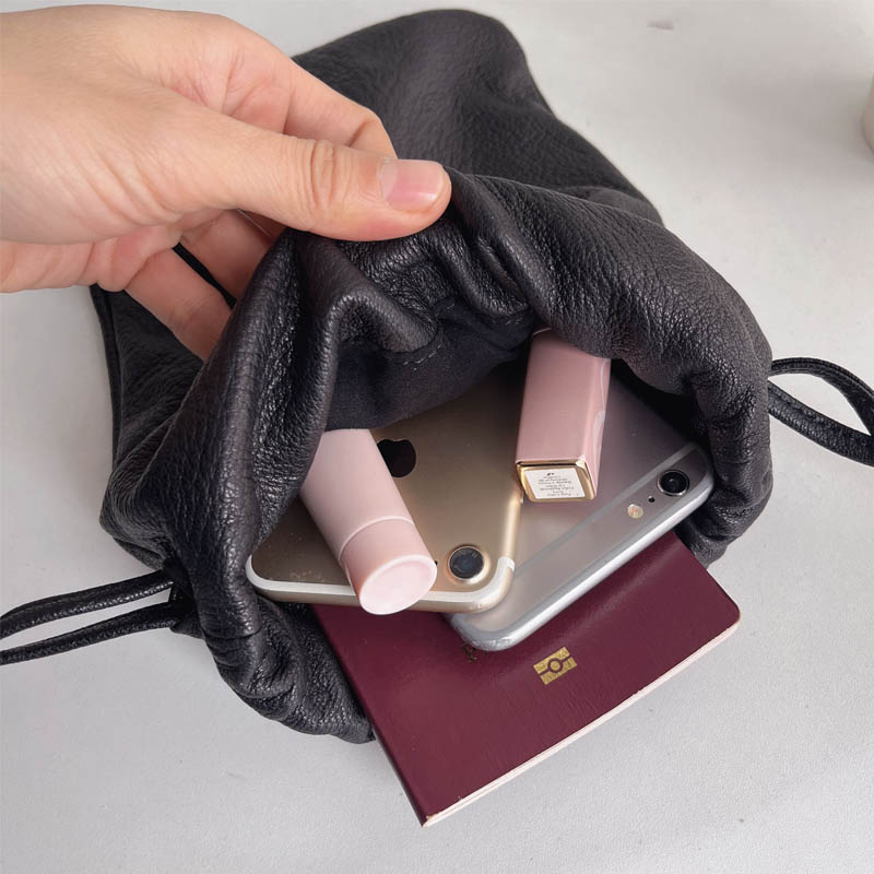 2025春新款轻便极简时尚软糯真皮女包~抽绳手机包羊皮小包斜挎包
