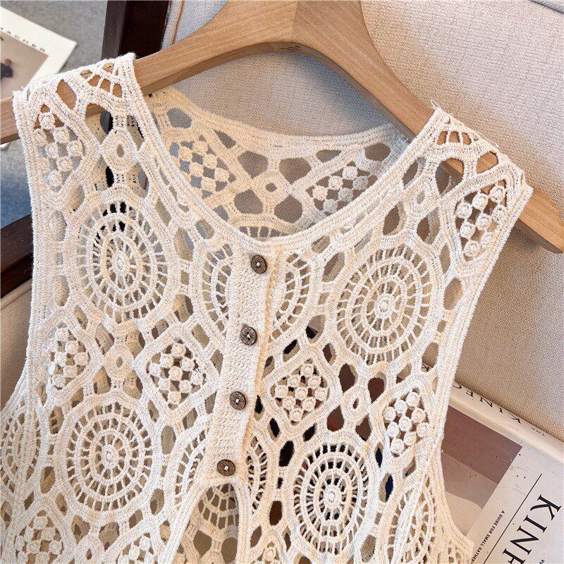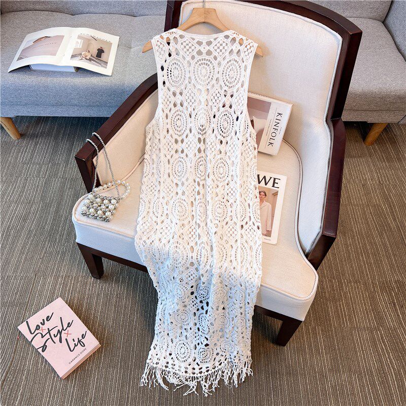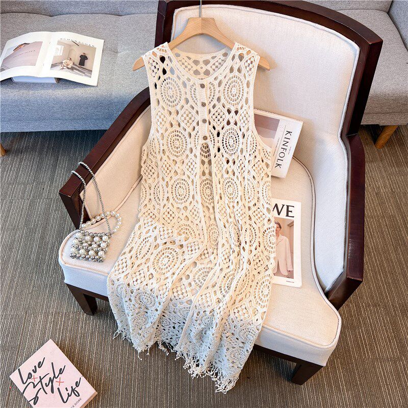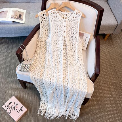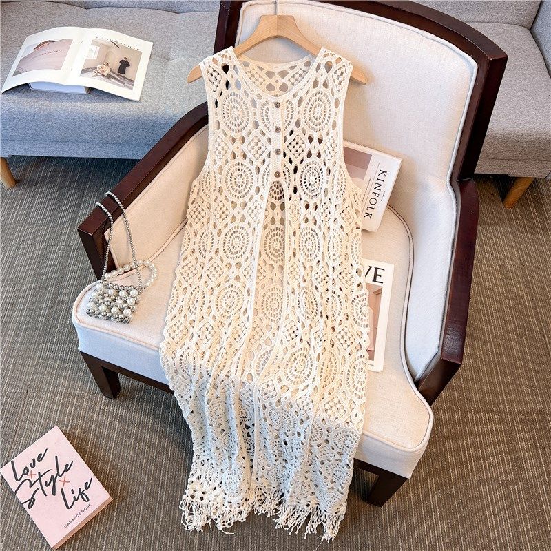钩花镂空针织吊带马甲背心裙女夏季2025新款开衫外搭叠穿罩衫长款