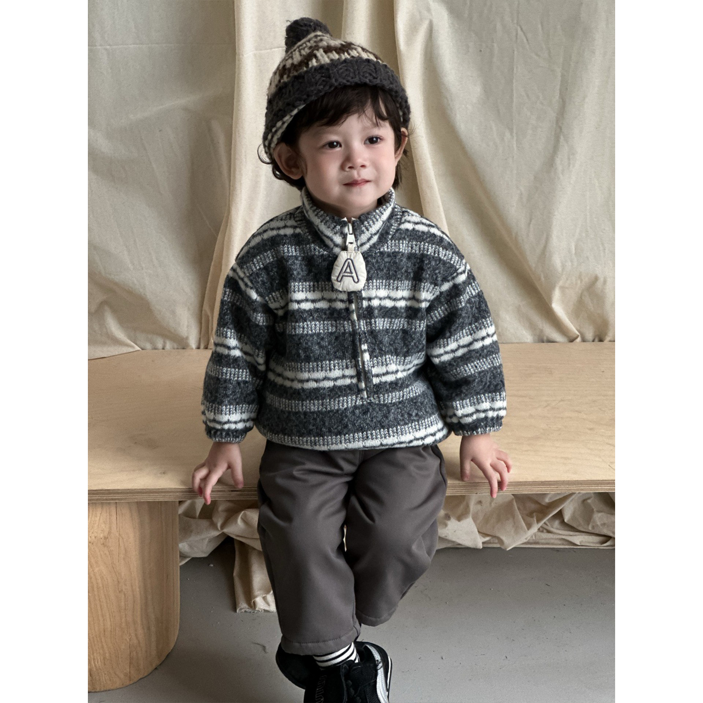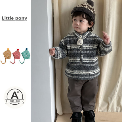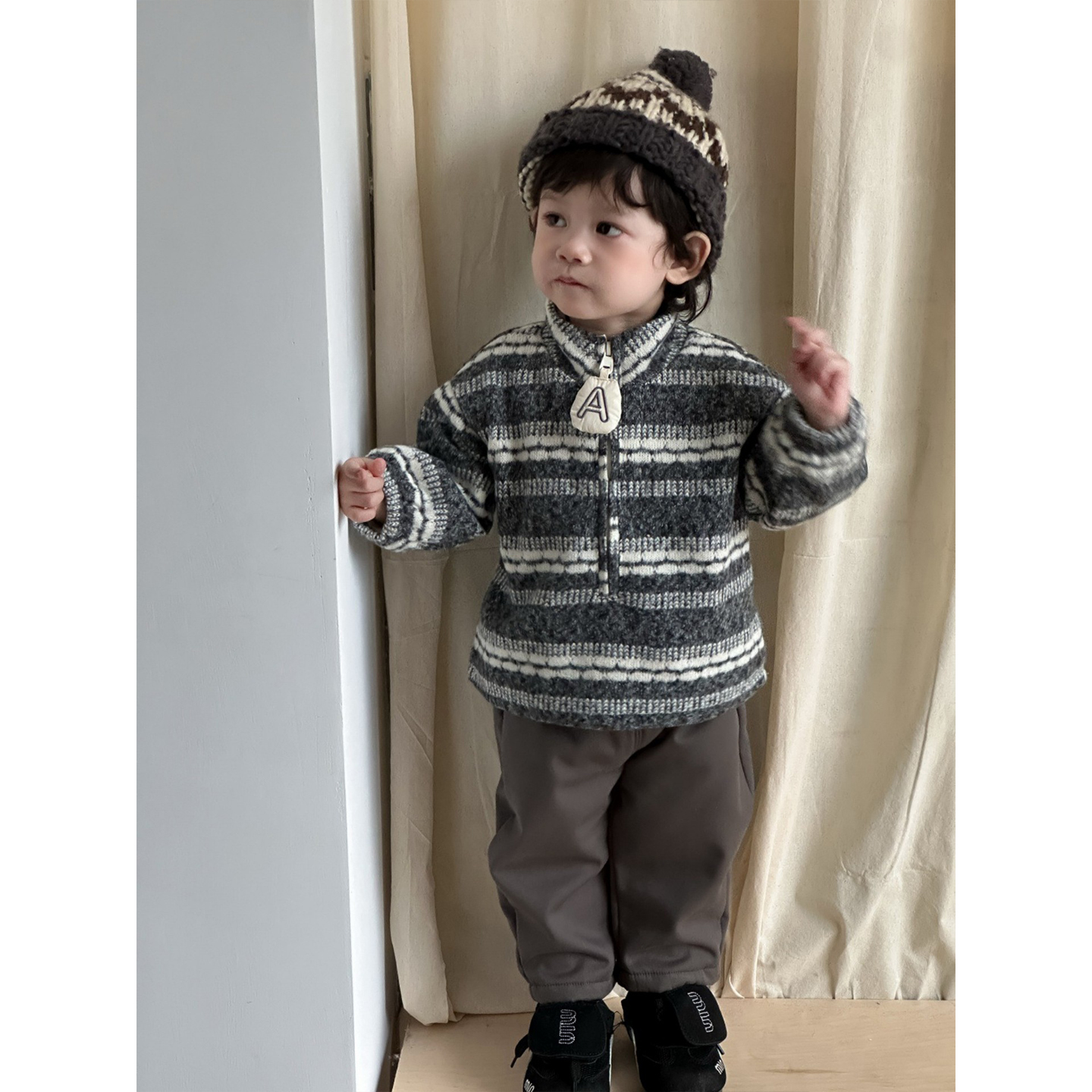 婴儿秋冬新款套装男女宝宝韩版条纹长袖毛衣加厚休闲裤子两件套潮