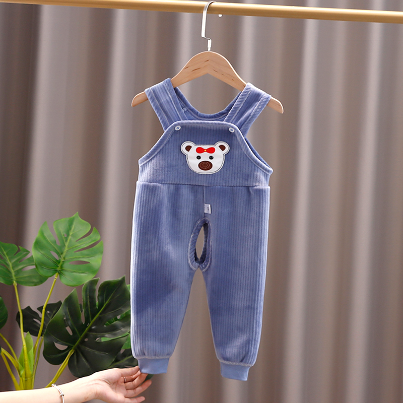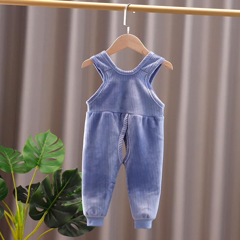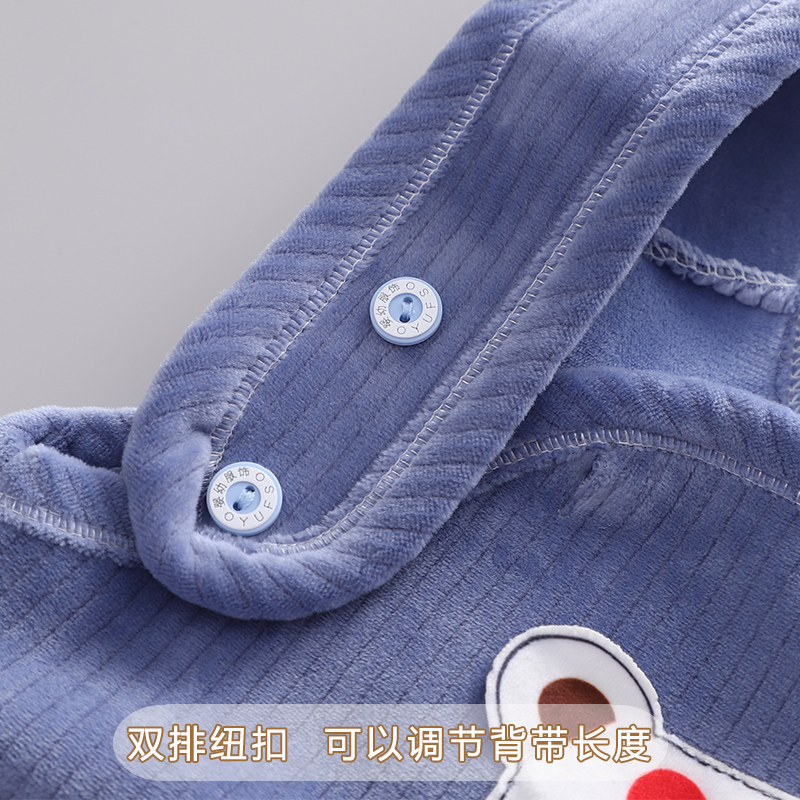 婴儿背带裤春秋冬加绒一岁宝宝保暖裤开档男女婴幼儿连体护肚裤子
