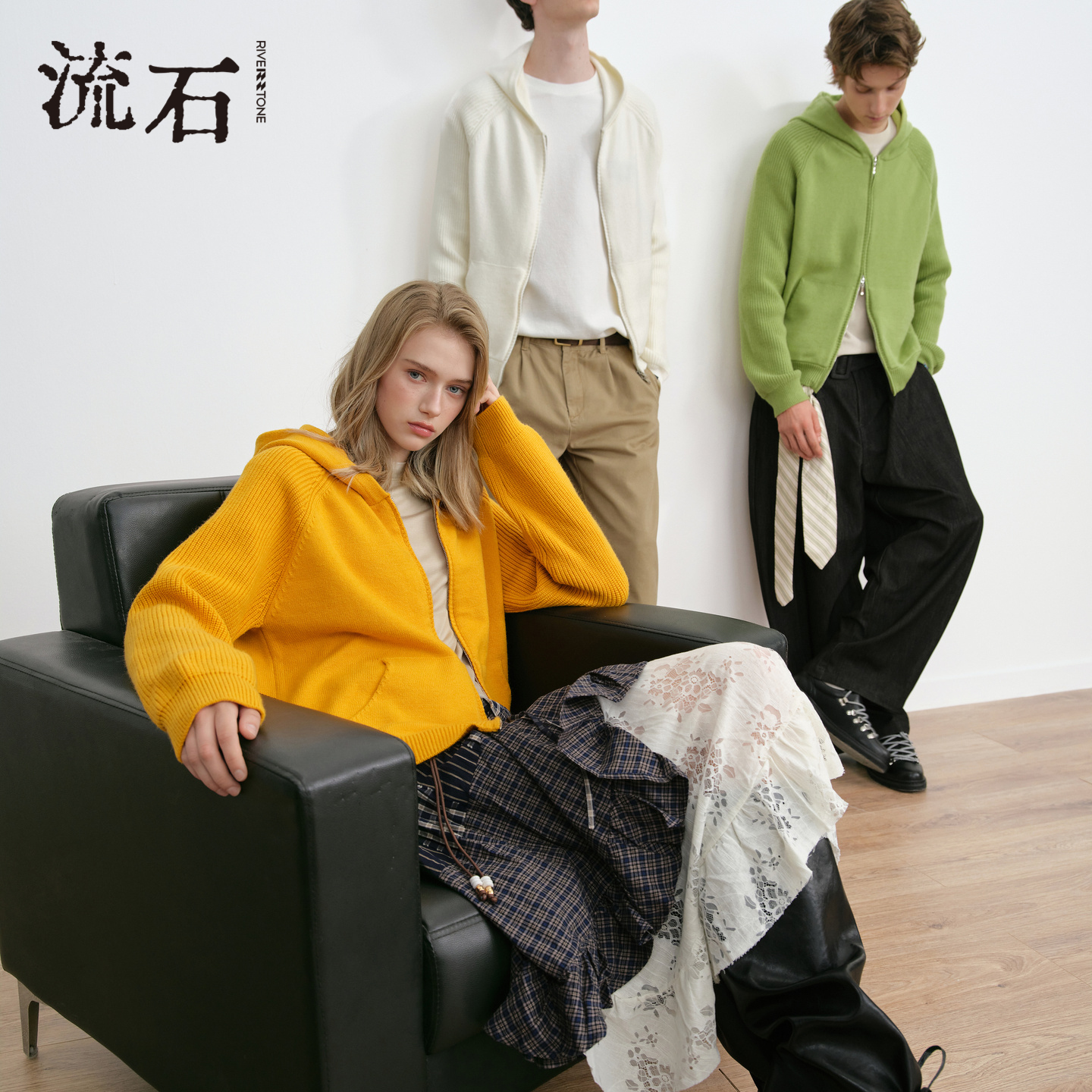 流石男装时尚休闲连帽外套2025年新款秋季男女学院风针织毛衣开衫