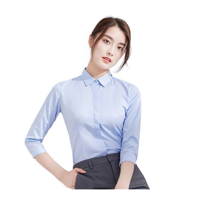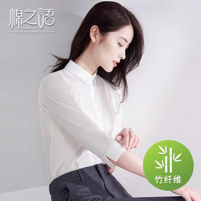 竹纤维七分袖白衬衫女弹力夏季职业上衣弹性商务工装中袖正装衬衣