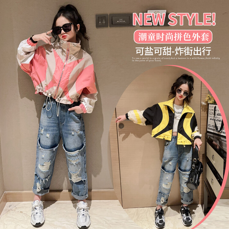 女童外套春装2025新款洋气儿童高级感小众高腰冲锋衣时髦短款上衣