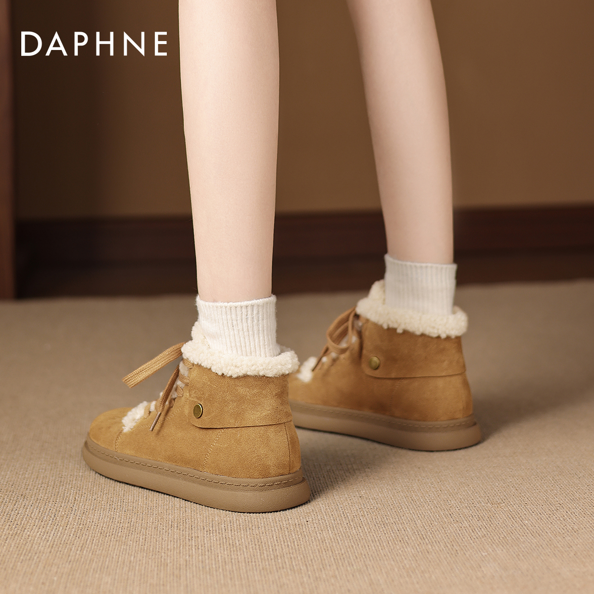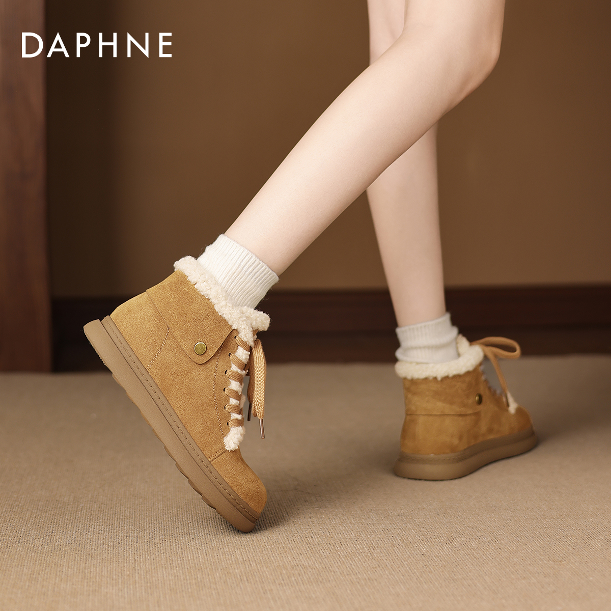 达芙妮雪地靴女款2025新款冬季加绒勃肯短靴保暖棉鞋毛毛马丁靴子