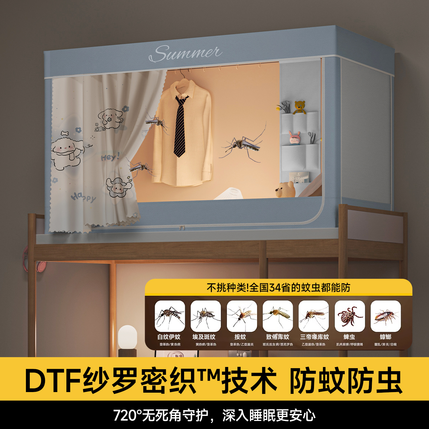 蚊帐学生宿舍遮光床帘新款单人上铺寝室下铺全包一体式免安装支架