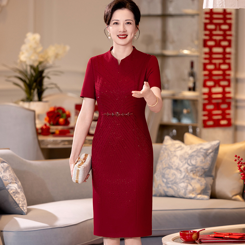 年轻妈妈红色喜庆婚宴礼服2025秋季新款洋气大方喜婆婆敬酒连衣裙