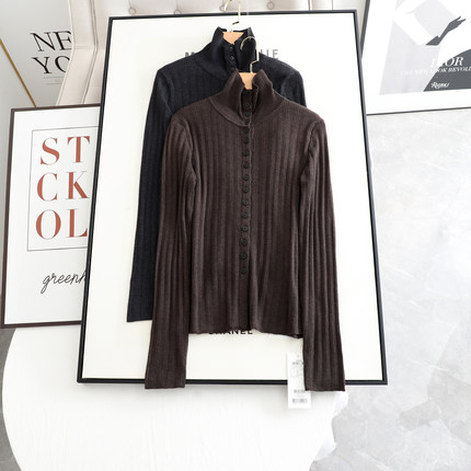 麦系の2026早春季新款气质简约高领灰色毛衣修身显瘦针织打底衫女