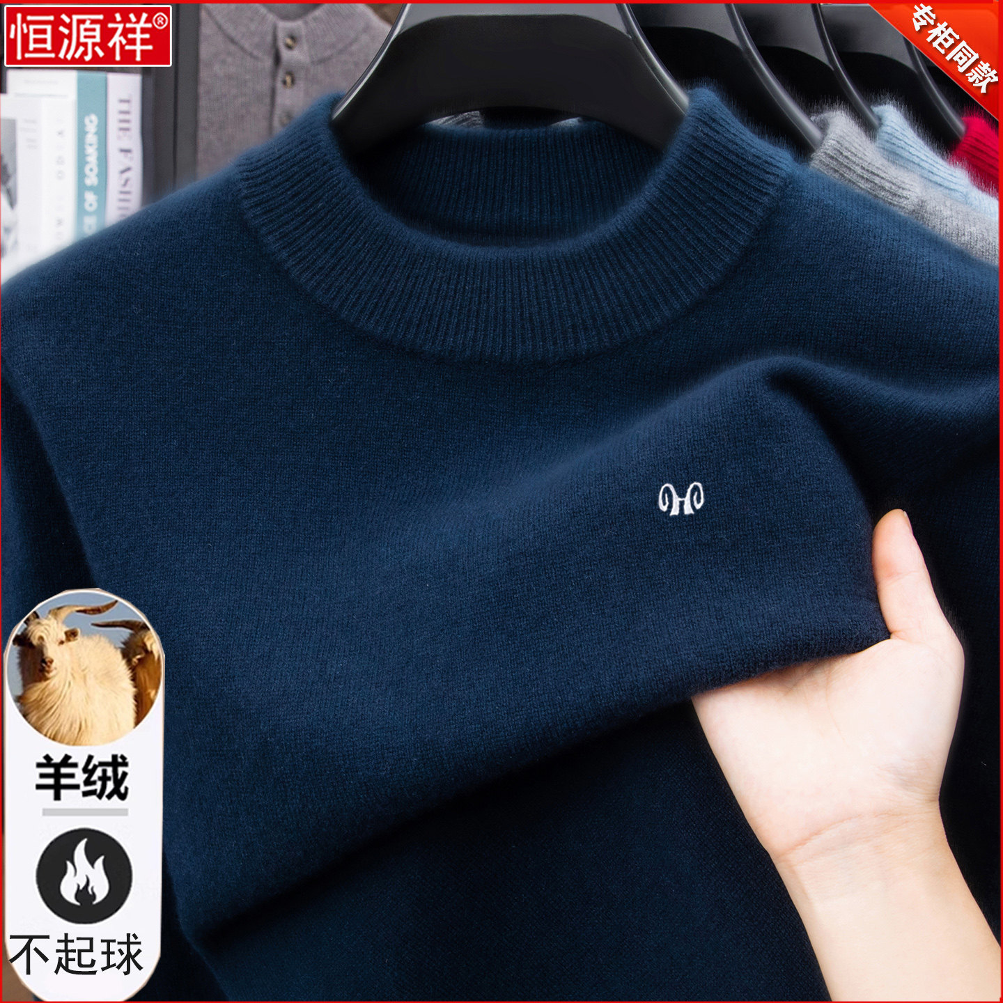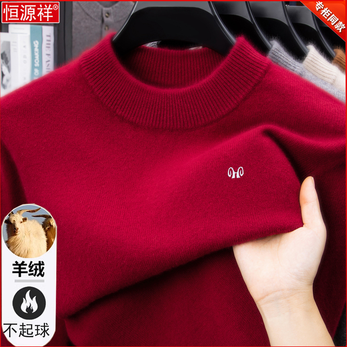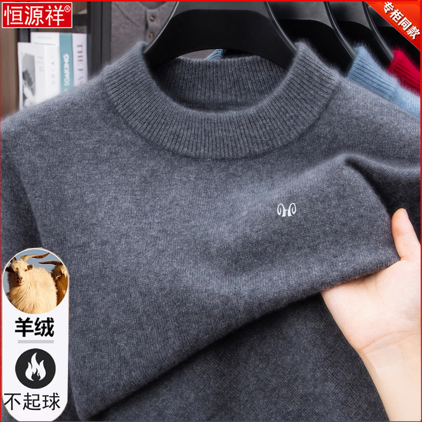 恒源祥羊绒衫男士冬季加厚保暖毛衣半高领爸爸纯色中年打底羊毛衫