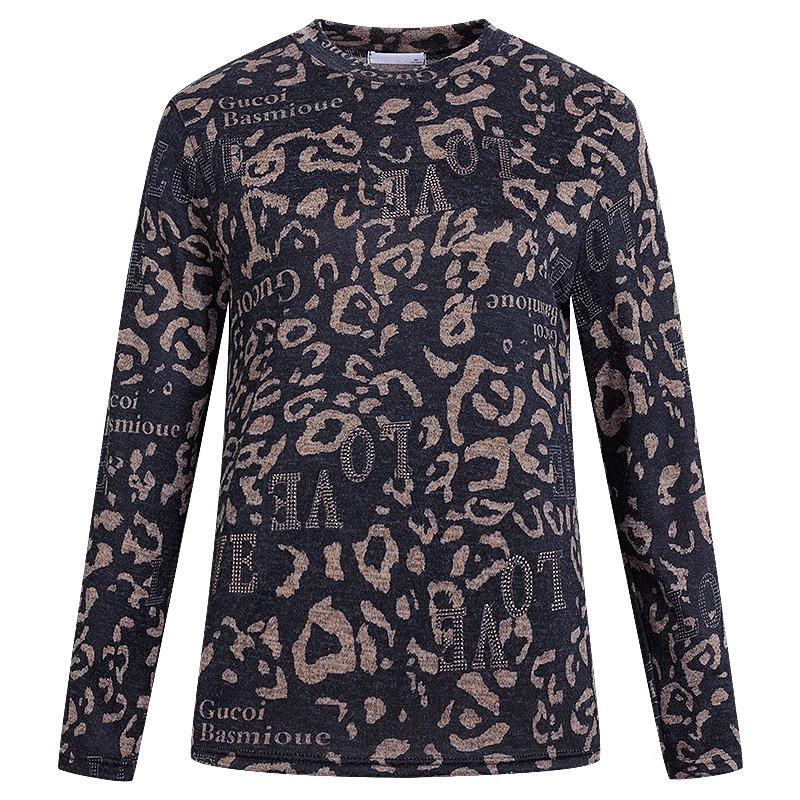 加绒豹纹打底衫女装2025秋冬新款洋气妈妈半高领长袖t恤大码上衣