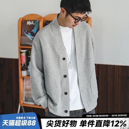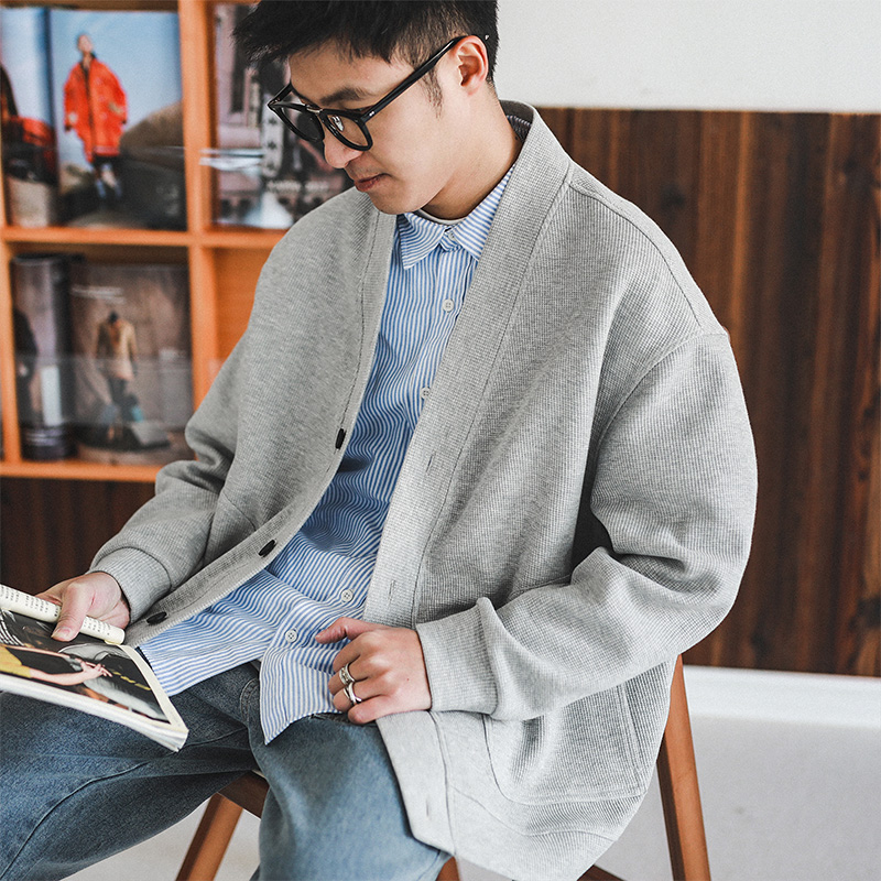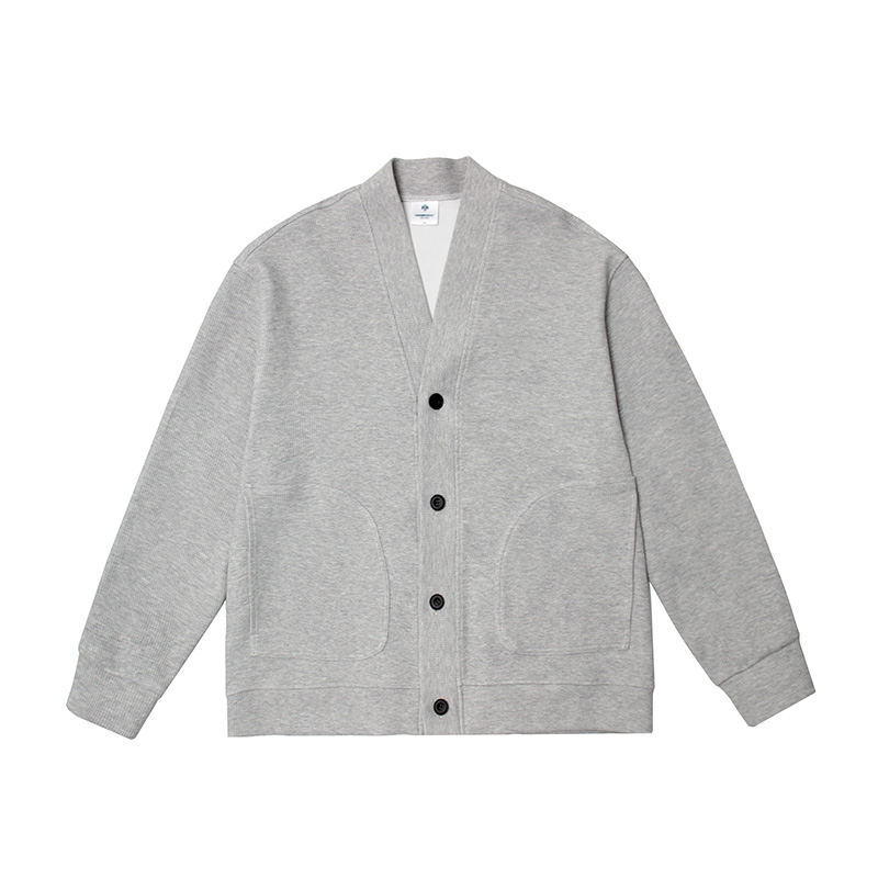 HEEMKIZOO日系春秋款简约风纯色华夫格针织开衫男女休闲百搭外套