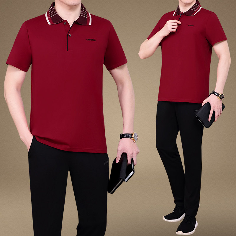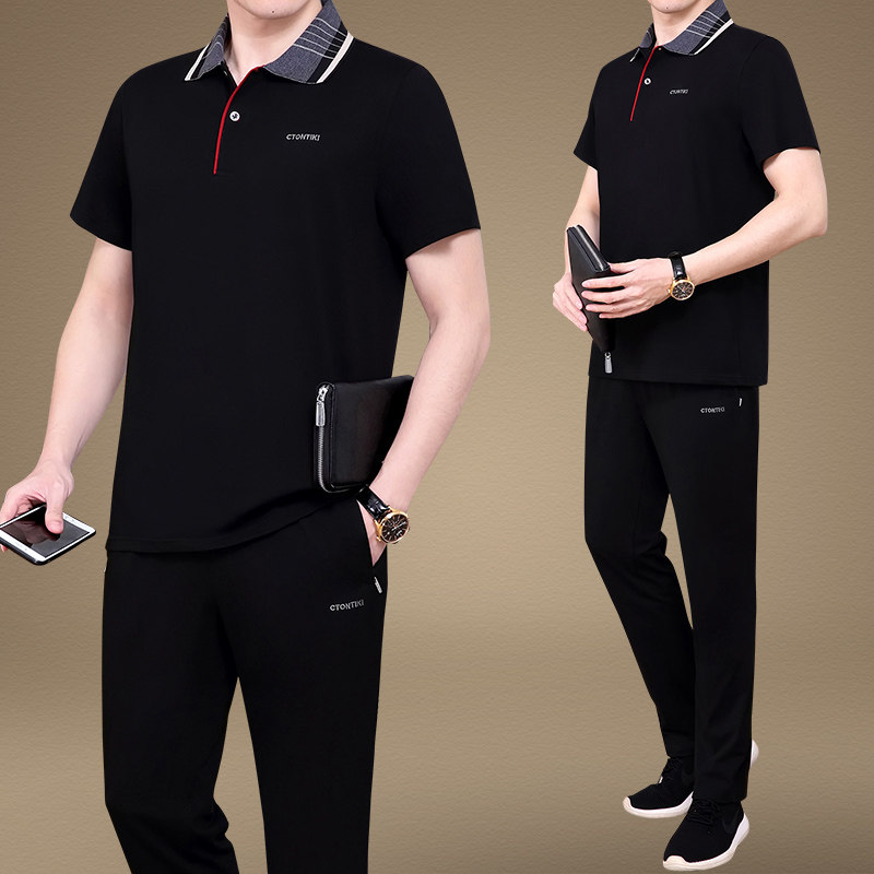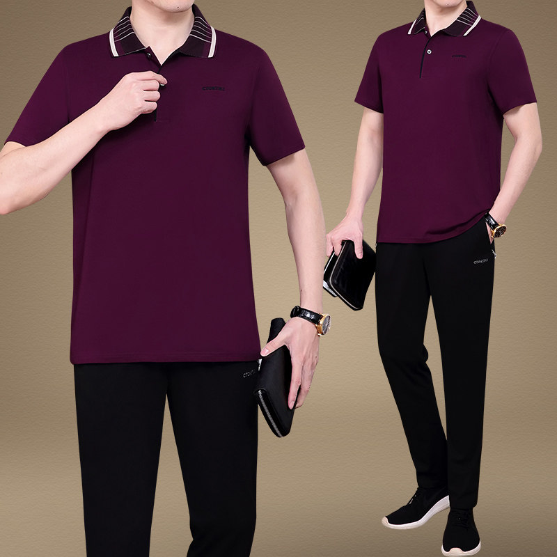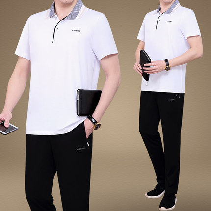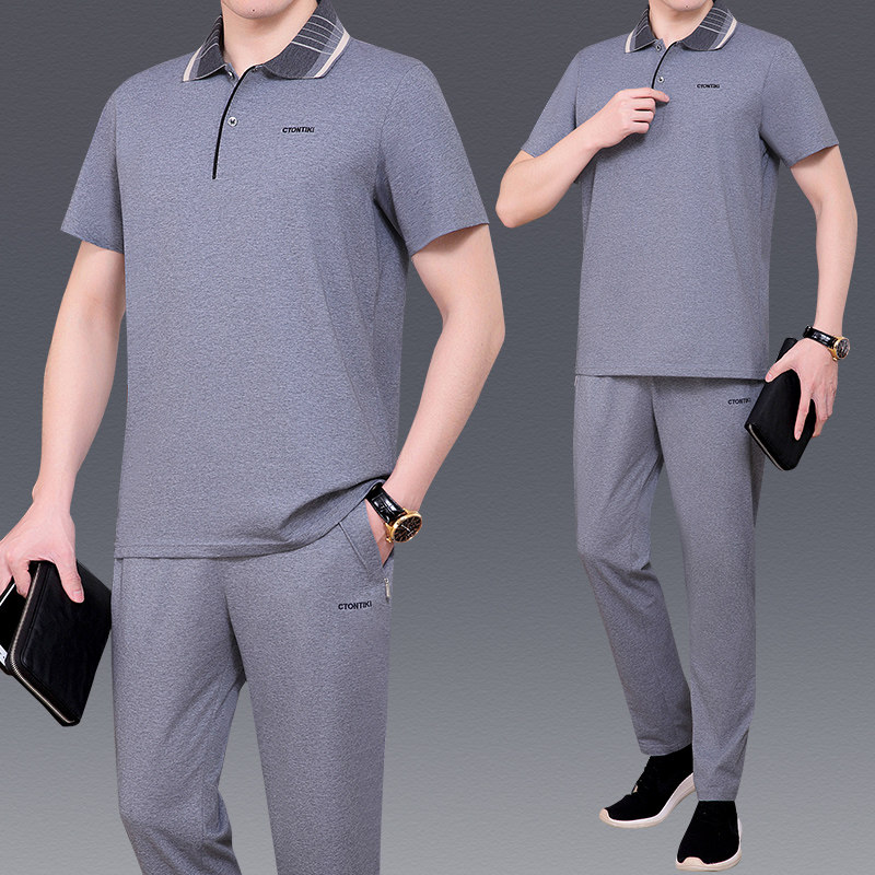 中老年男士运动服休闲套装夏季薄款短袖T恤父亲节爸爸夏装套装男