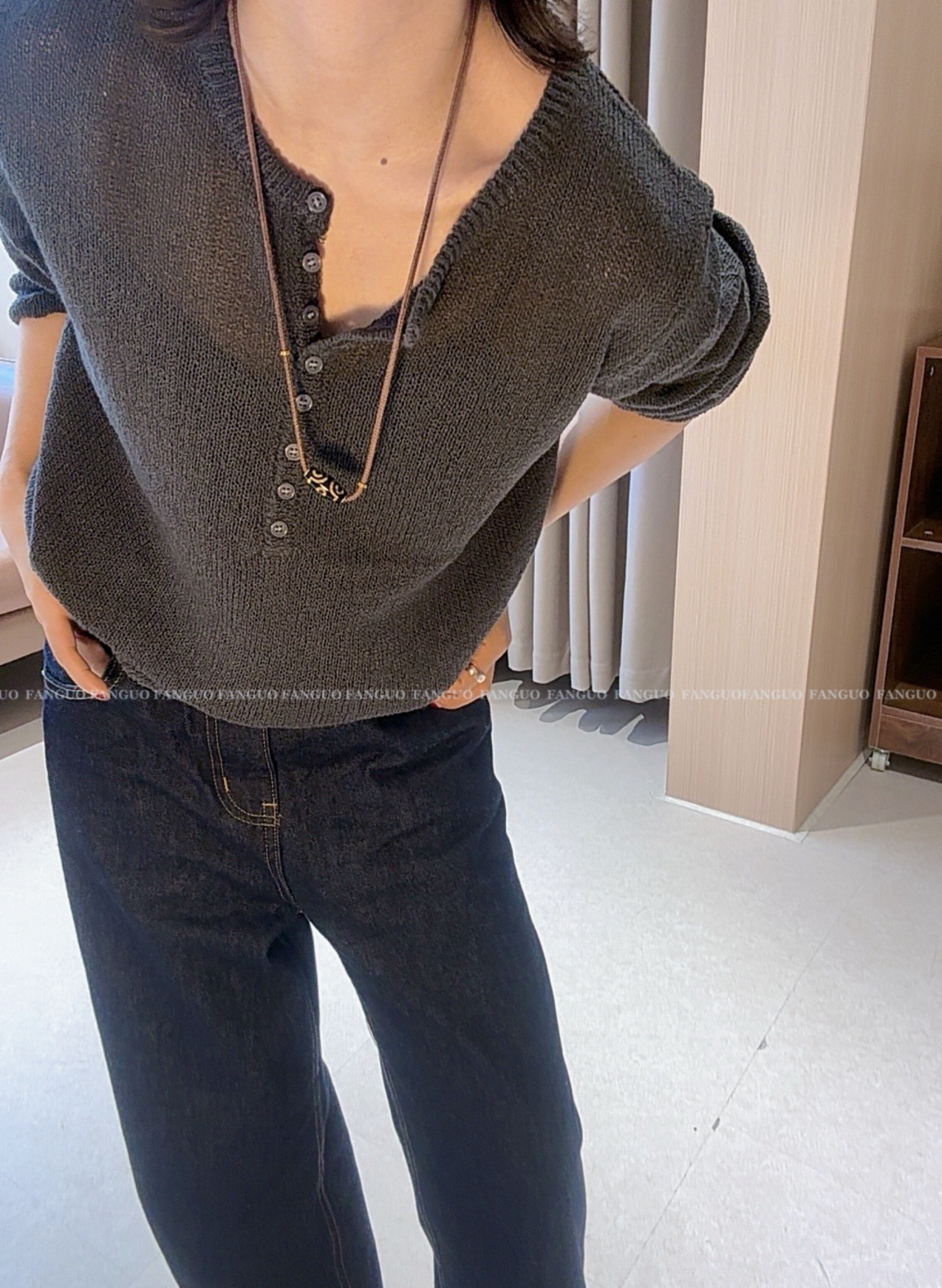 【高定禾子纱】韩国东大门 休闲百搭宽松慵懒风针织衫女亨利衫