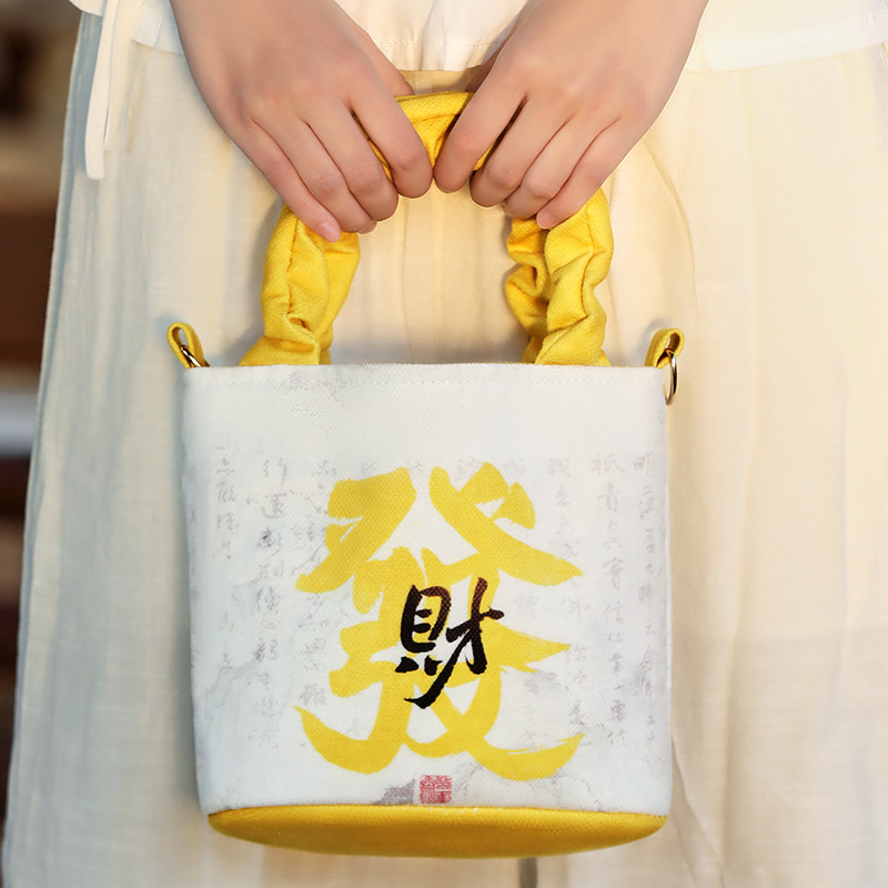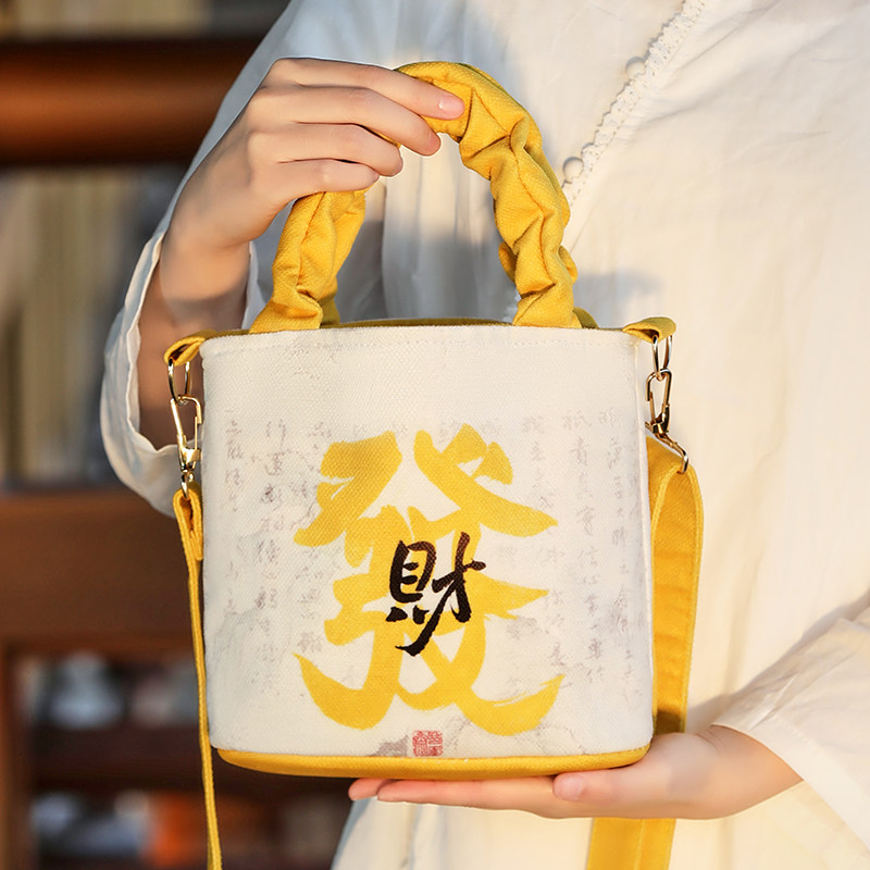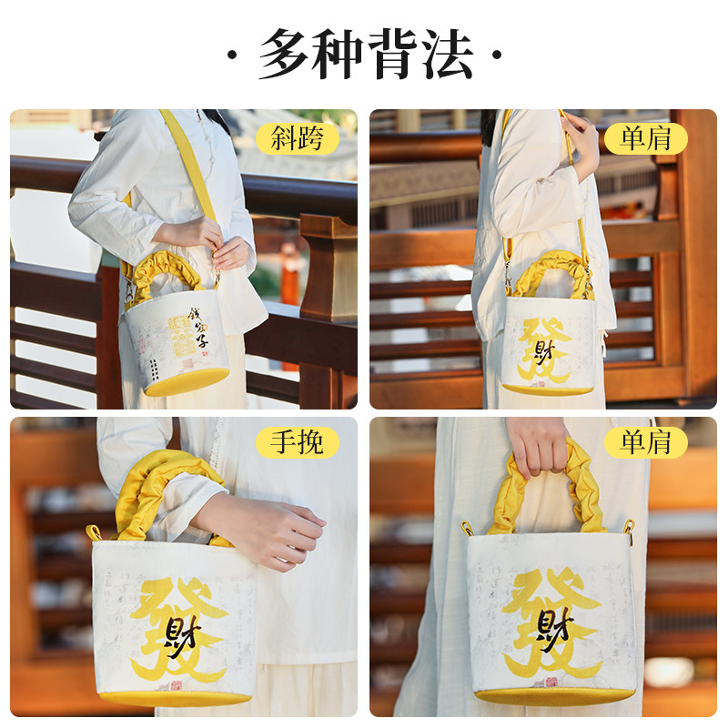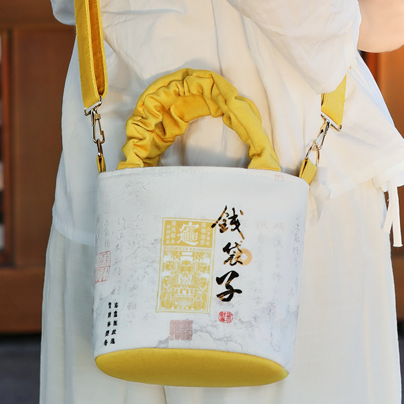 新款文创钱袋子帆布招财女生单肩斜挎手提包包旅游学生收纳袋暴富