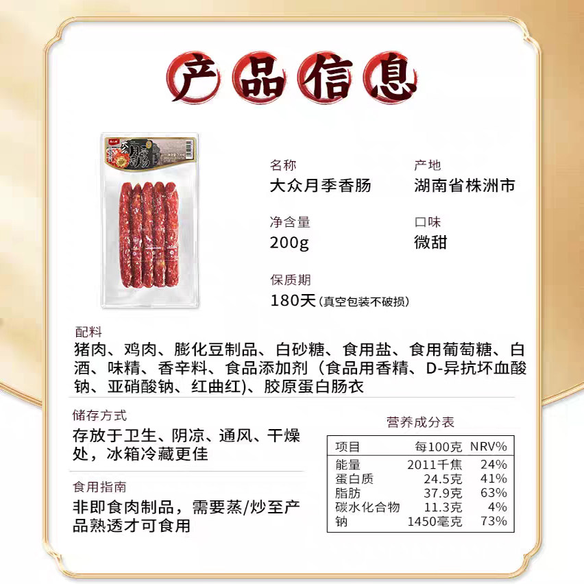 唐人神大众月季香肠200g广式微甜腊肠湖南特产四六肥瘦