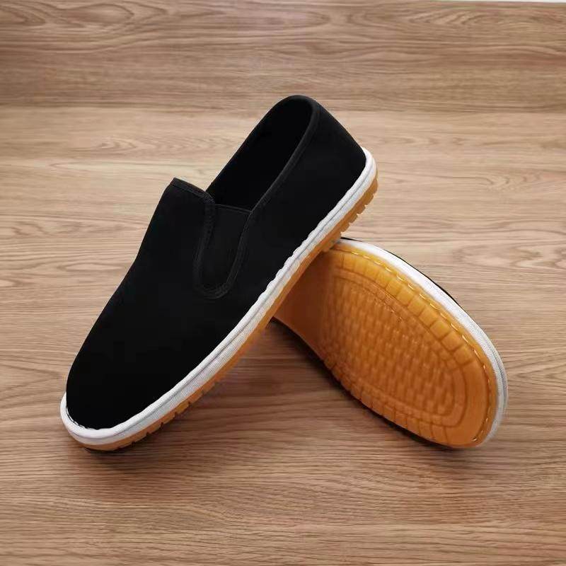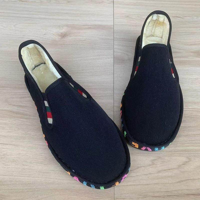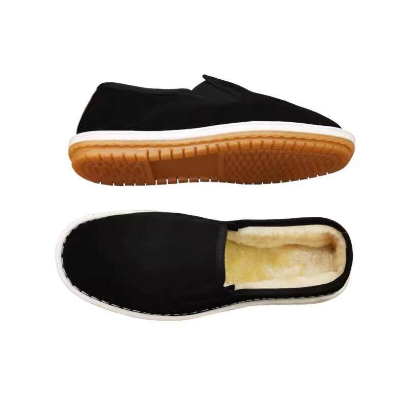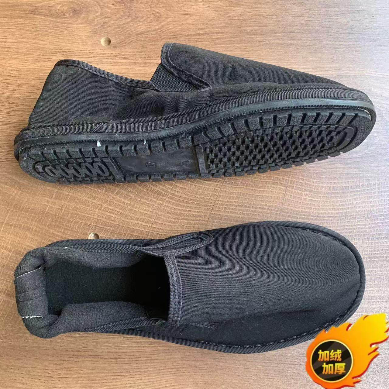 冬季台州西山加绒加厚布鞋男女老北京保暖牛筋软底低帮长绒棉鞋黑