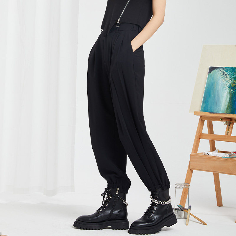 金苑休闲裤女夏季新款束口裤宽松时尚女裤显瘦九分裤C222107