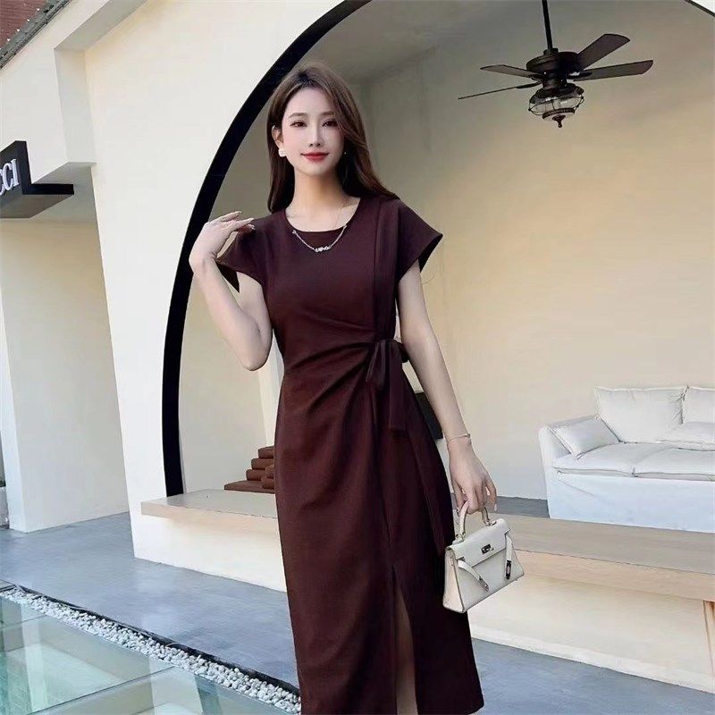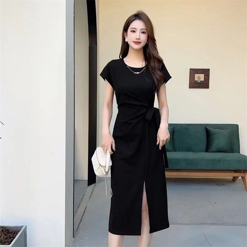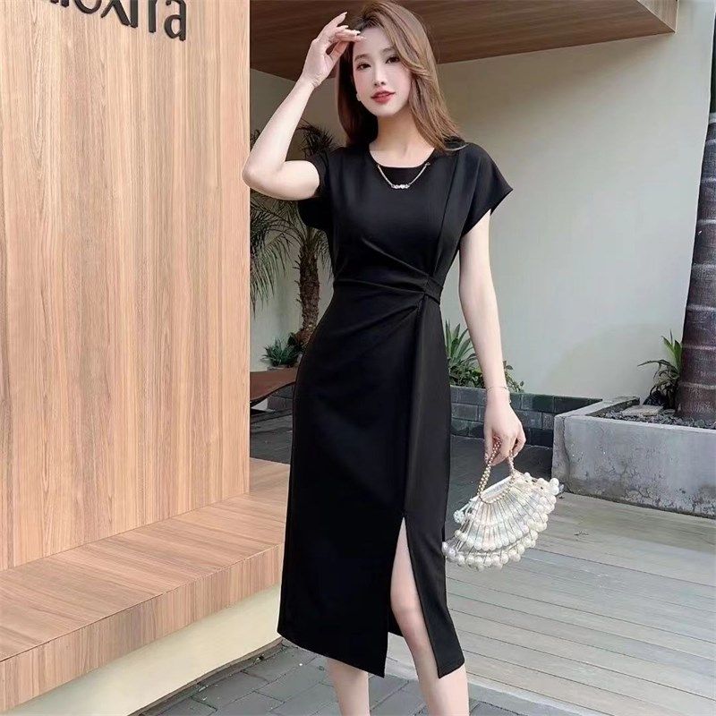 女装夏装新款优雅精致气质御姐修身连衣裙开叉收腰时尚显瘦中长款