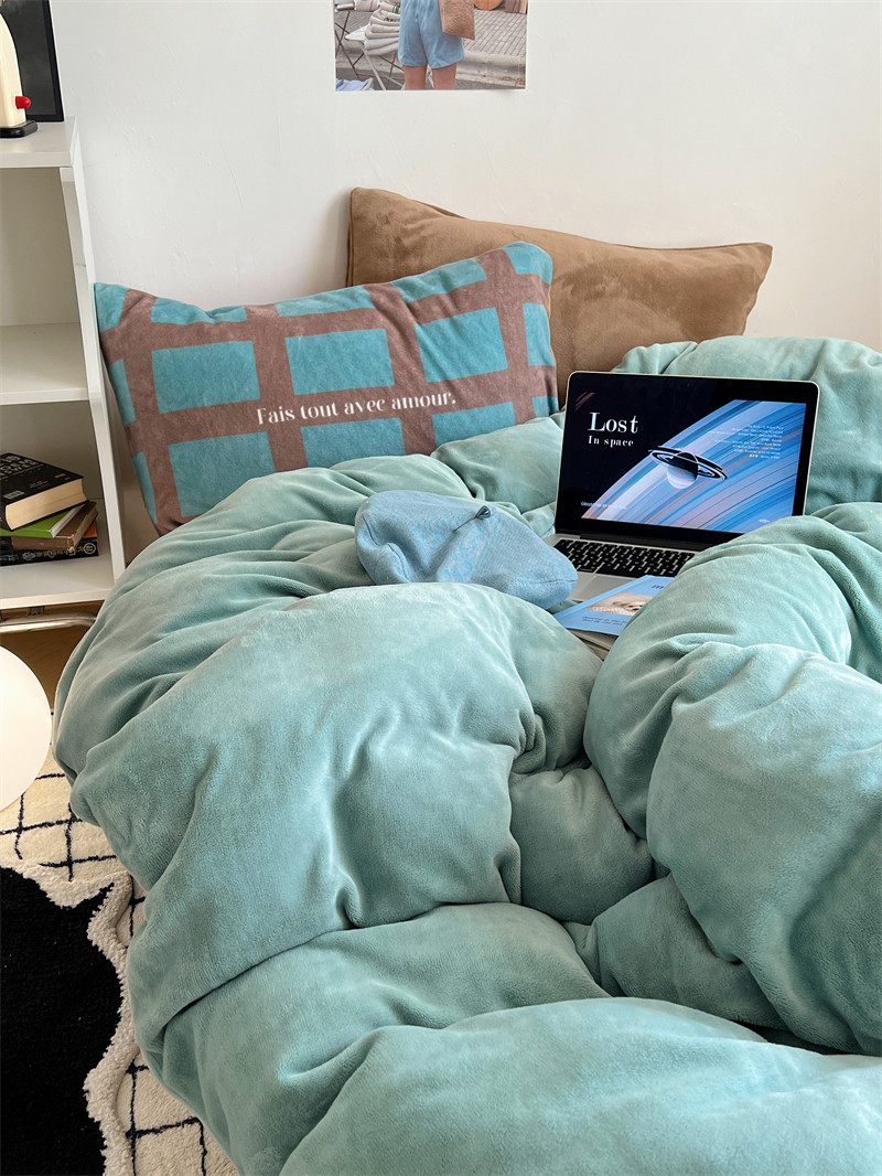 梨梦 陨石拿铁冬季保暖加厚牛奶绒四件套床单被套珊瑚绒床上用u.