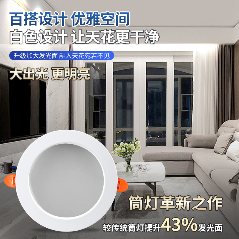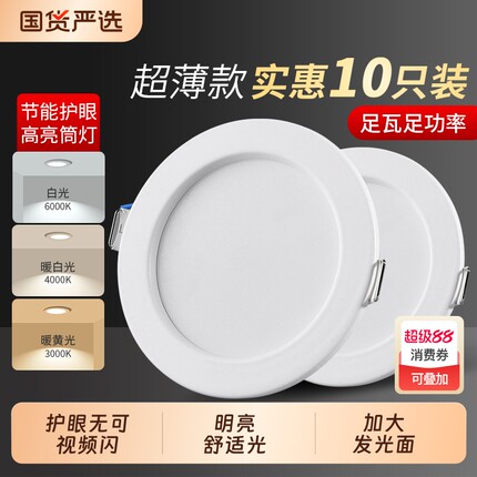 led筒灯嵌入式家用客厅超薄吊顶天花灯开孔75mm牛眼射灯孔灯洞灯