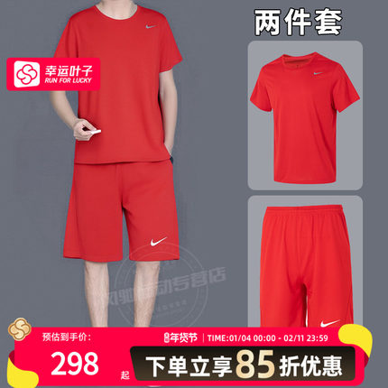 NIKE耐克男装冬季红色运动套装25新款跑步短袖T恤短裤透气健身衣