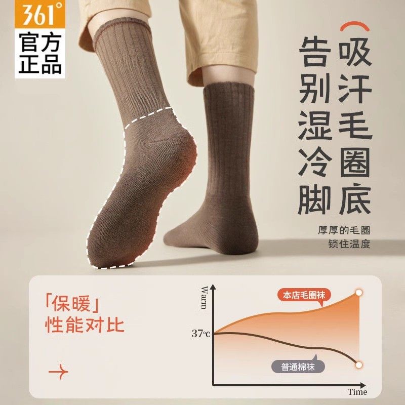 361正品男袜冬季加绒加厚保暖中筒袜子男士休闲商务棉袜运动长袜
