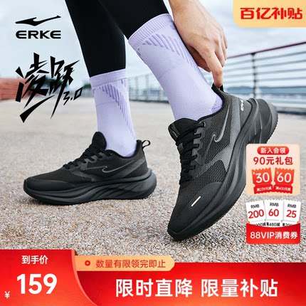 凌跃3鸿星尔克跑鞋女冬季新款运动鞋软底减震跑步鞋黑色休闲女鞋