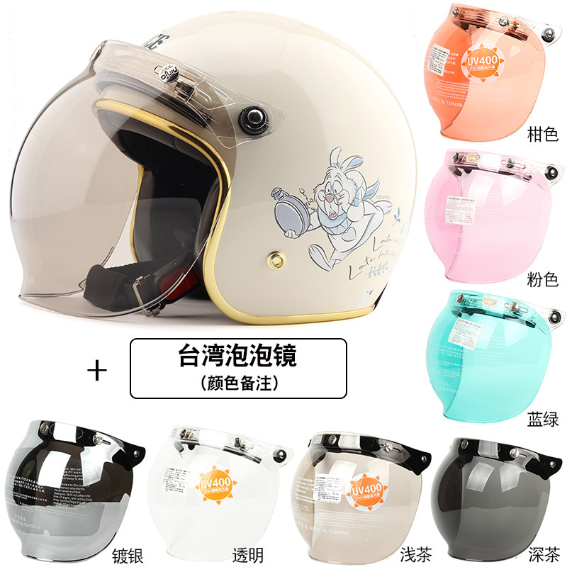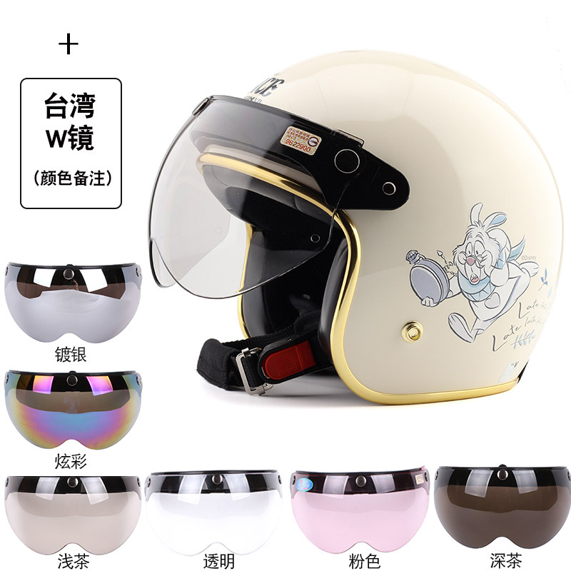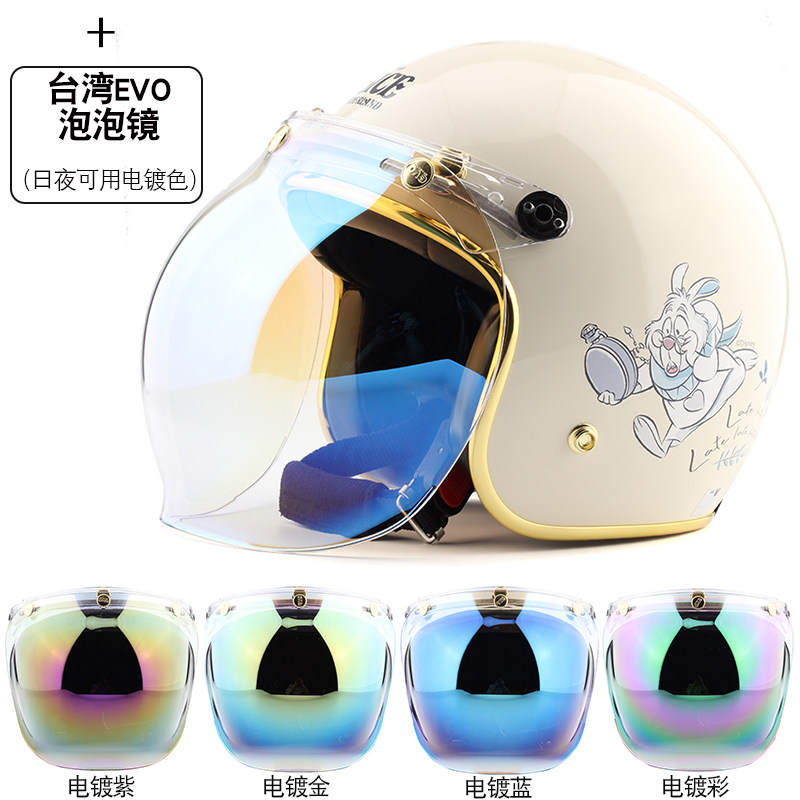 台湾EVO精装象牙白色爱丽丝哈雷复古电动摩托车头盔男女保暖冬季