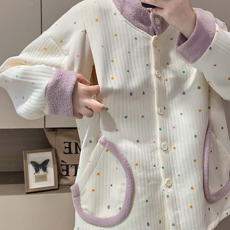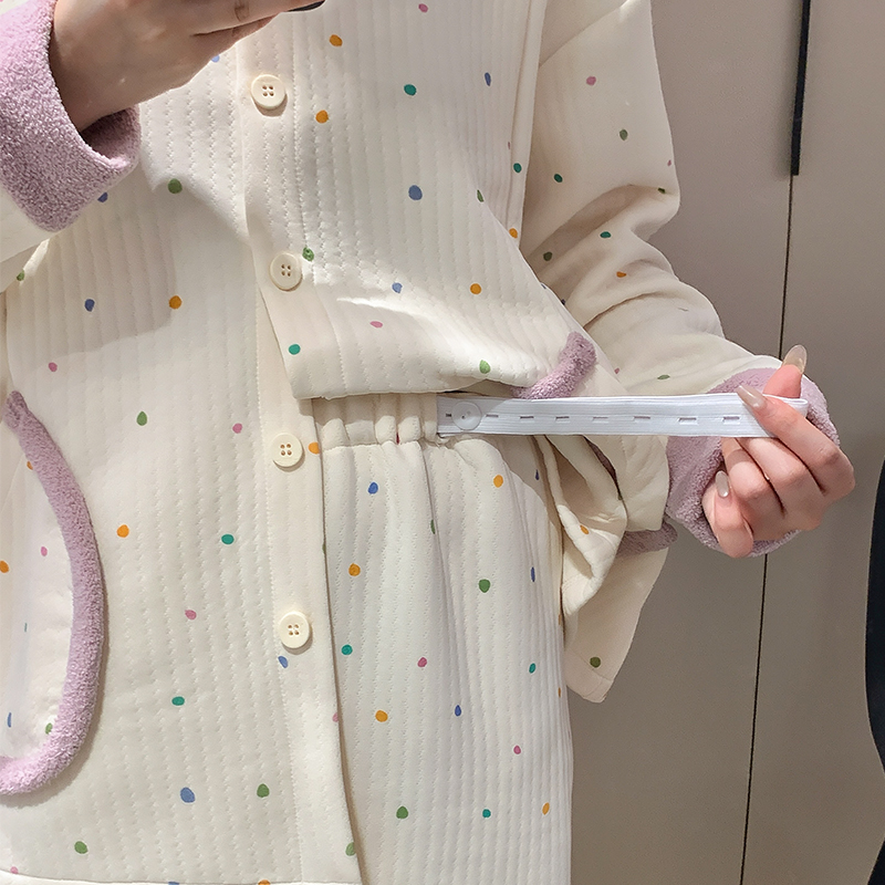 婧麒月子服冬厚款产后空气棉孕妇睡衣哺乳产妇待产喂奶外穿家居服