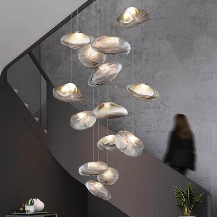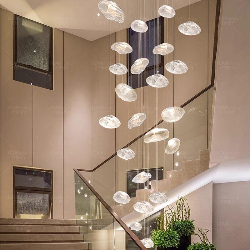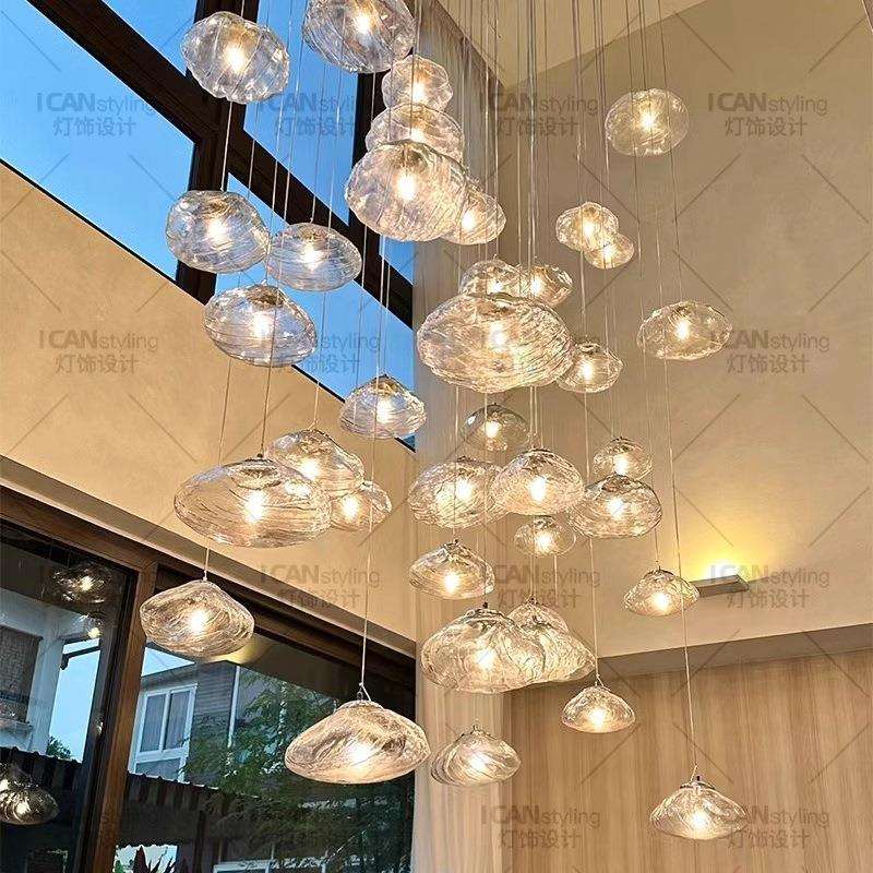挑空玻璃吊灯loft挑高熔岩复式楼别墅楼梯间大公寓长线云朵灯客厅