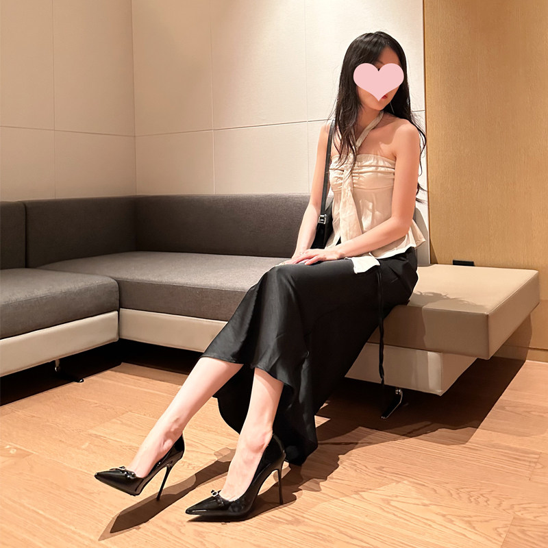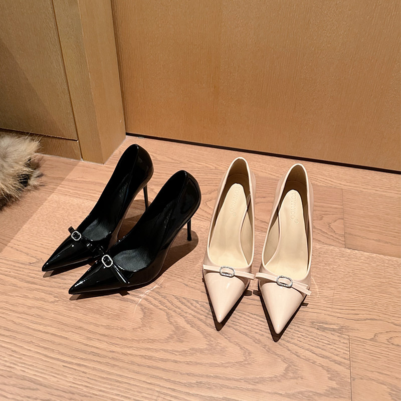 高跟鞋女2025年春秋新款细跟尖头蝴蝶结水钻气质法式单鞋配裙子黑