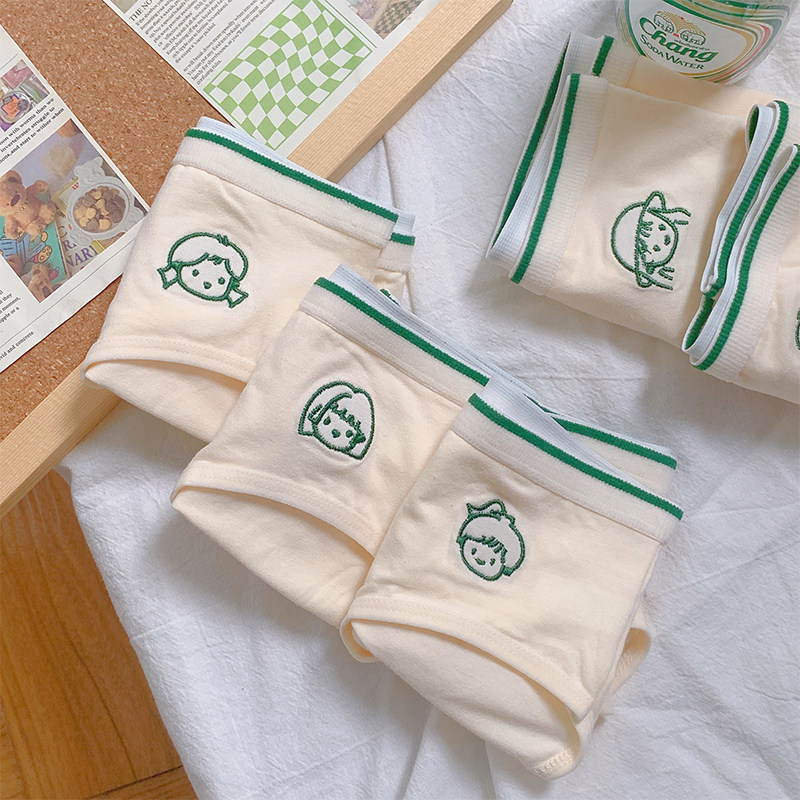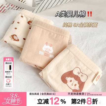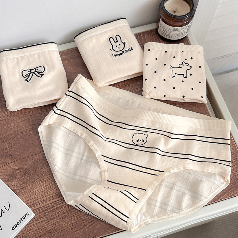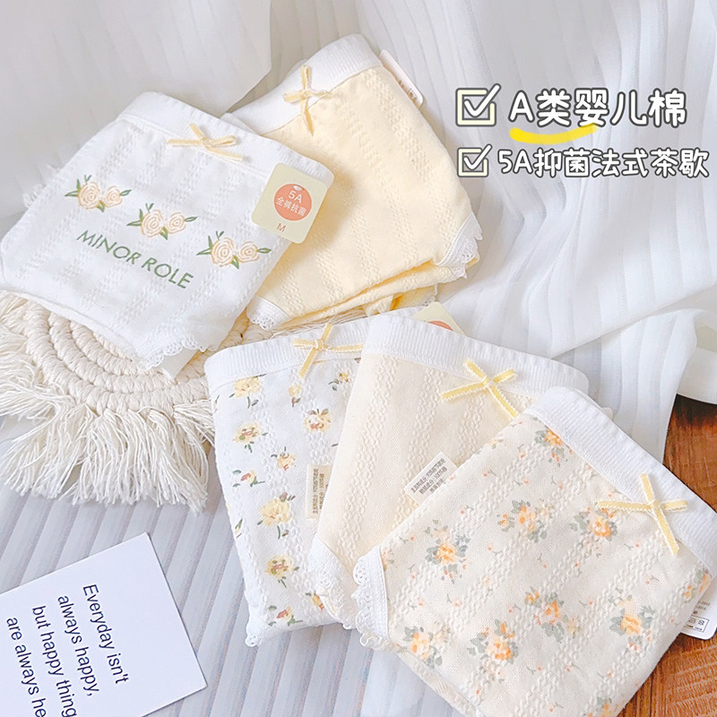 可爱电波~5条A类内裤纯棉少女学生5A抗菌奶油色舒适女生中腰无痕