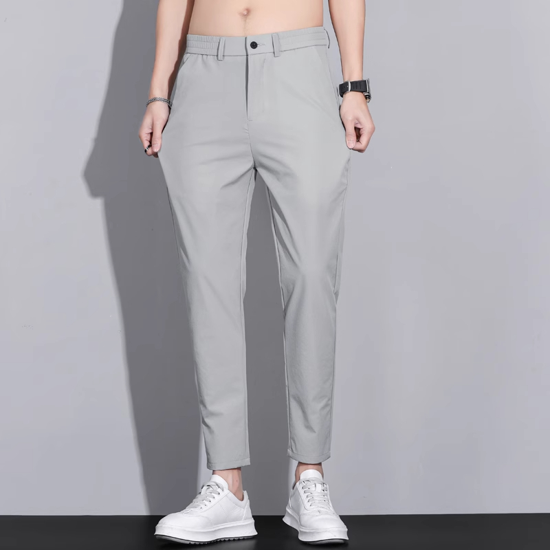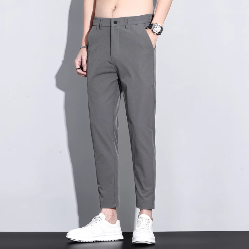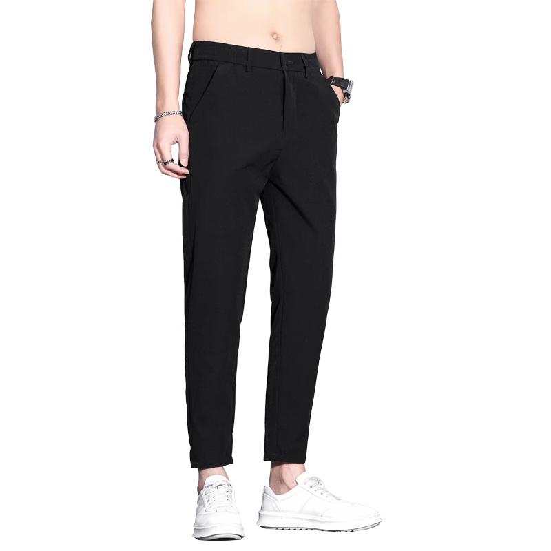 花花公子黑色九分裤男士修身冰丝薄款小西裤子男生夏季新款休闲裤