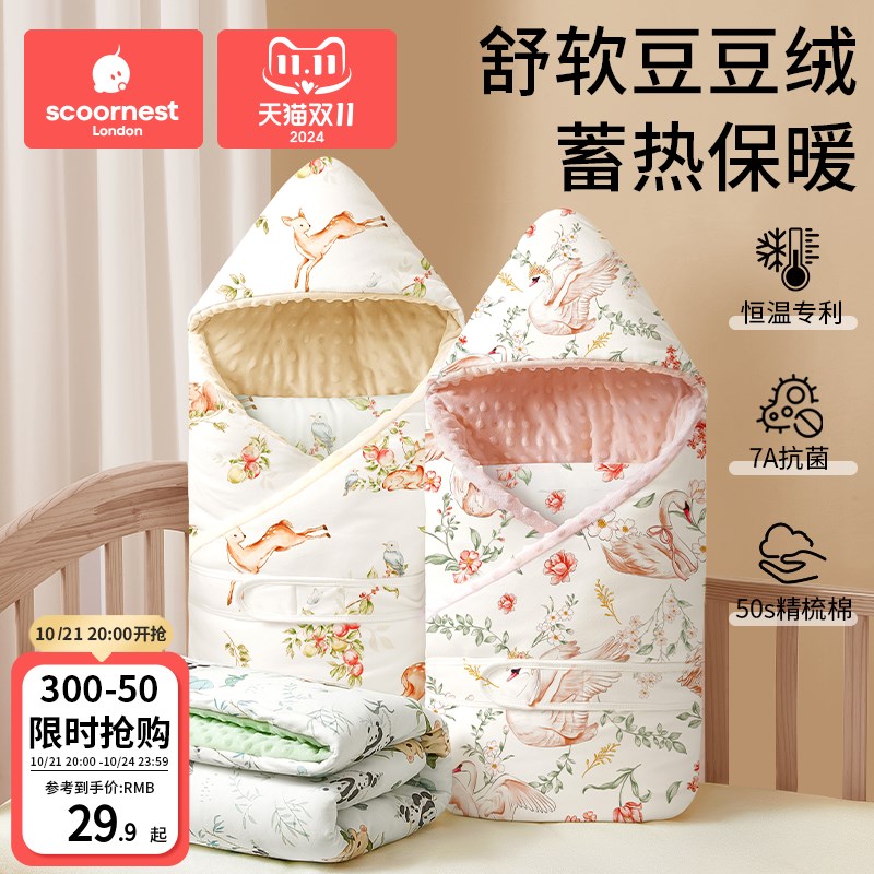 婴儿包被新生儿初生包单纯棉a类抱被秋冬产房宝宝包巾10月份厚款